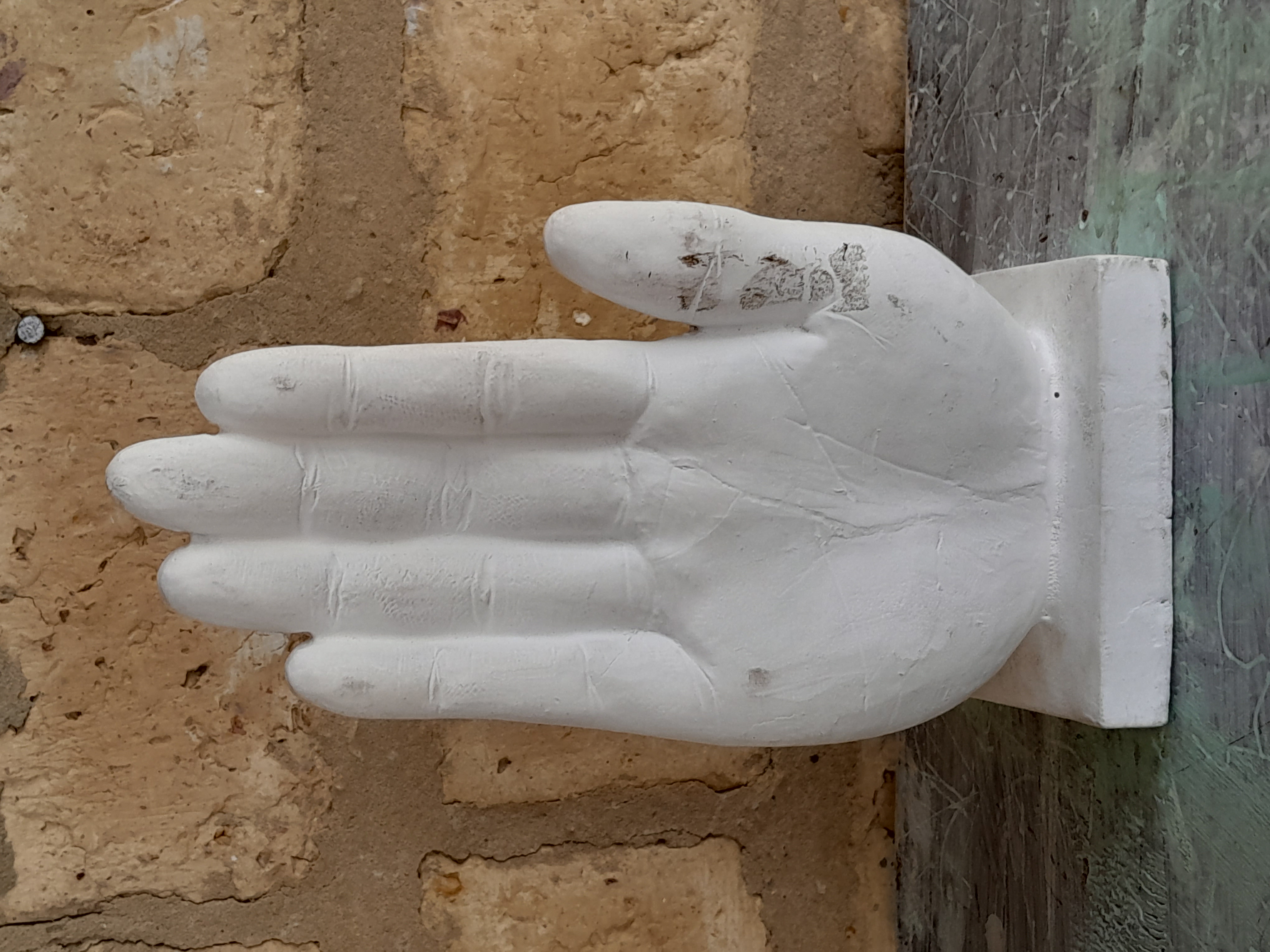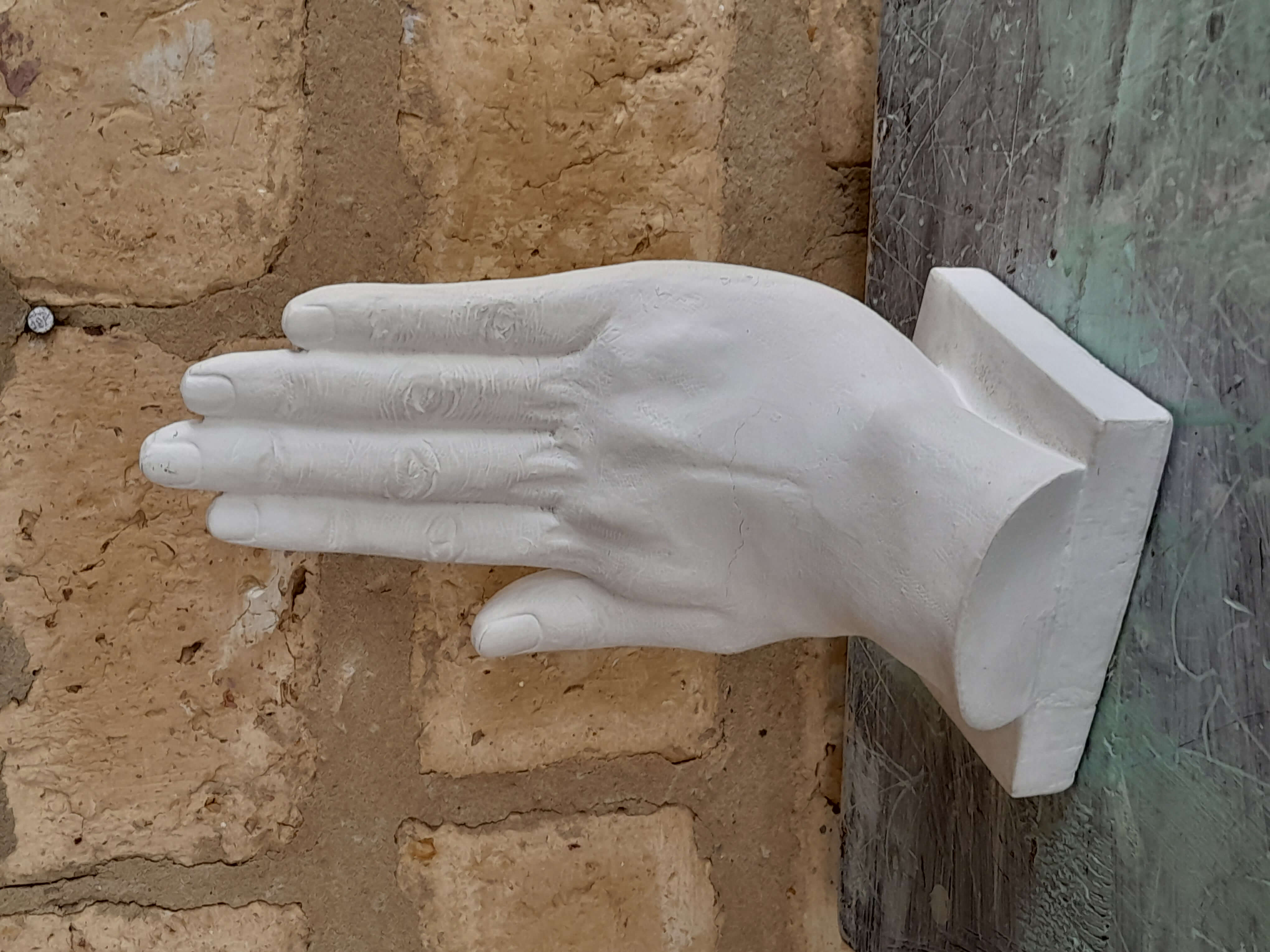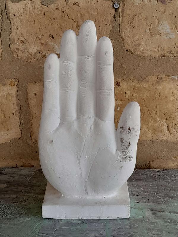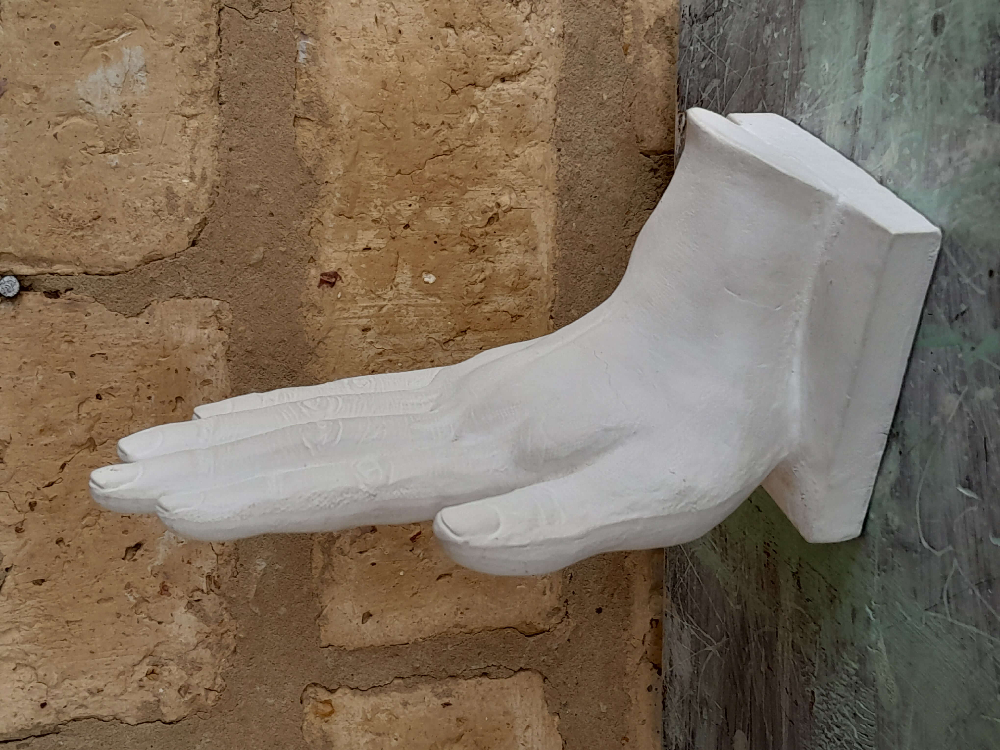 Mano decorativa en resina elaborada con el molde de una mano real, se puede utilizar para trancar los libros.
