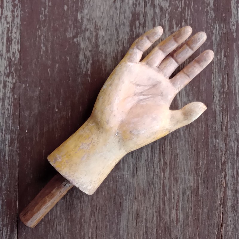 Talla en madera de una mano perteneciente a una imagen religiosa del S XIX.
