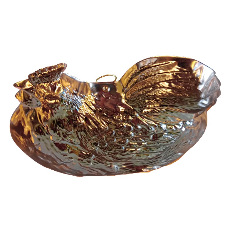 Molde cobrizado en forma de gallina utilizado en los años 80´s para gelatina y tortas.