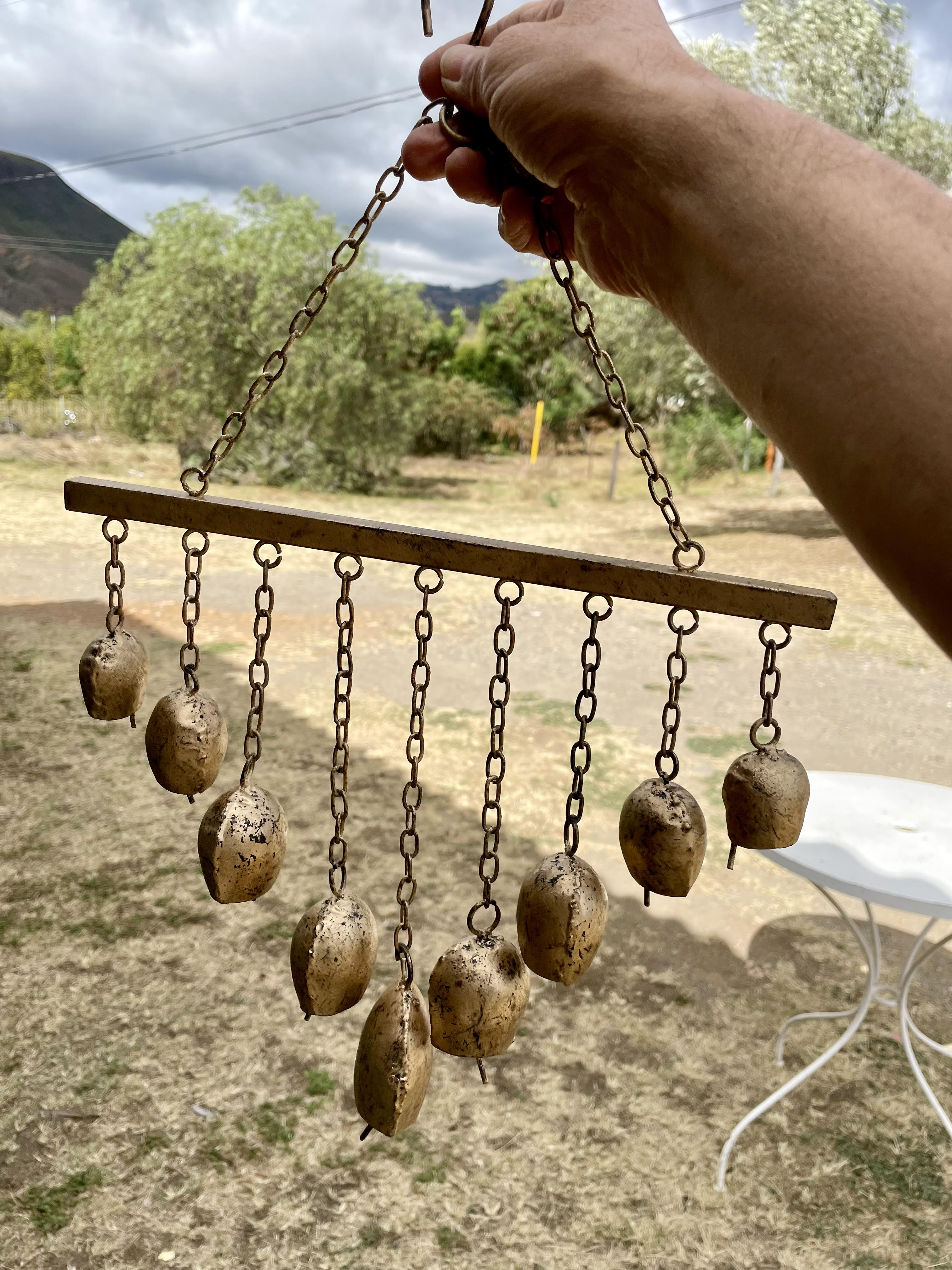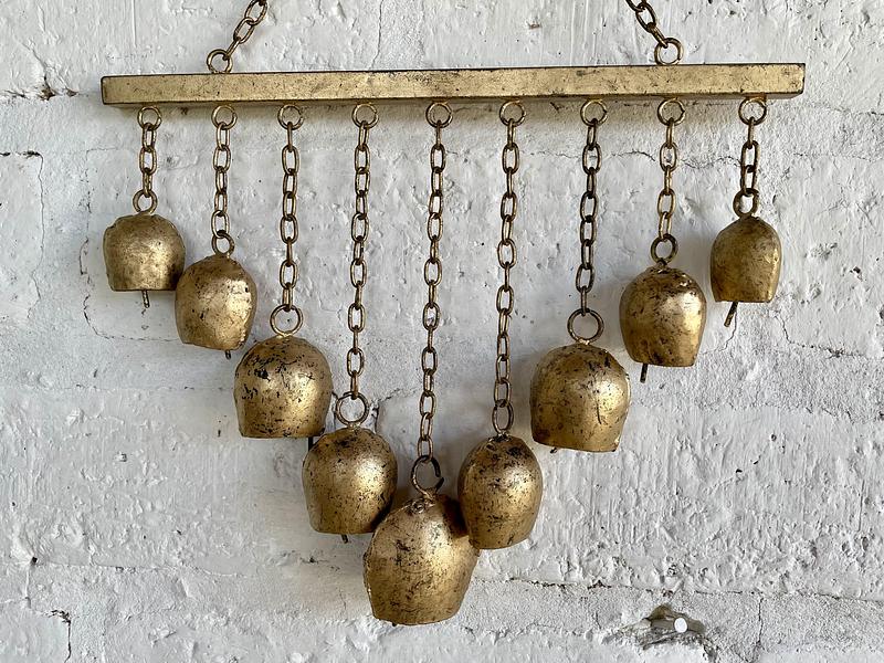 Móvil de 9 cencerros tibetanos metálicos .