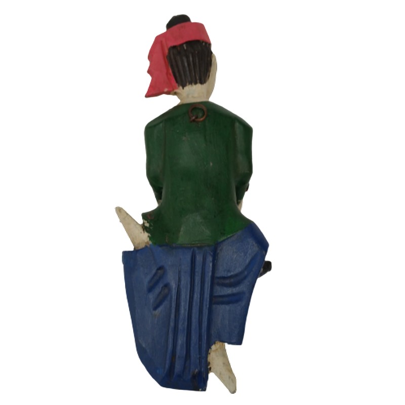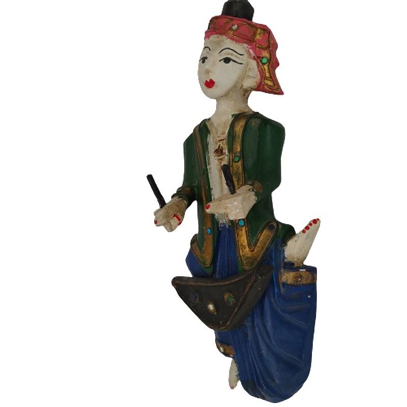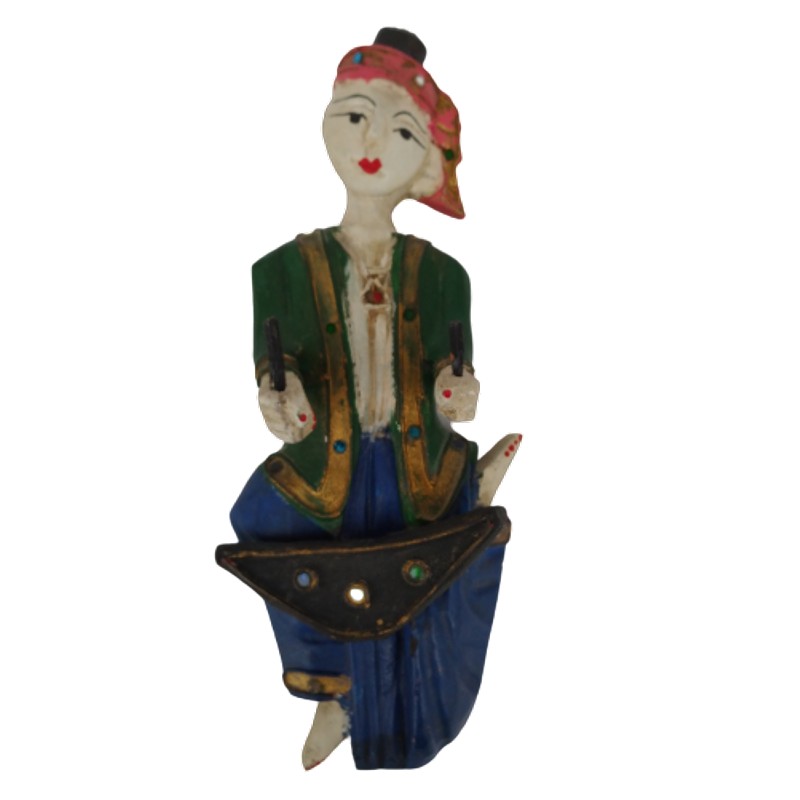 Pequeña talla de madera para colgar en la pared de un músico tocando marimba.