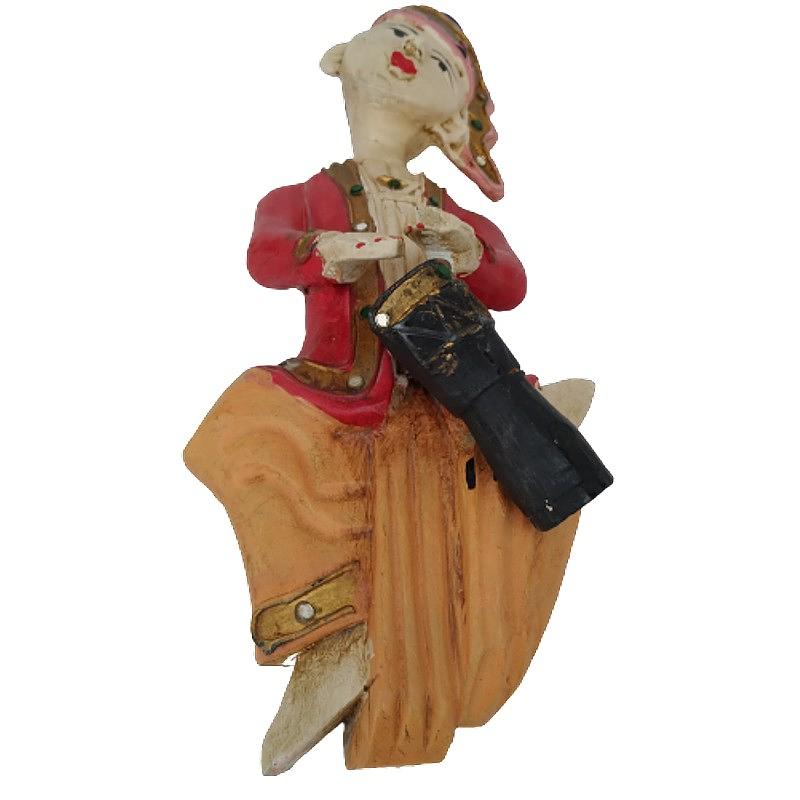Pequeña talla de madera para colgar en la pared de un músico tocando tambor.