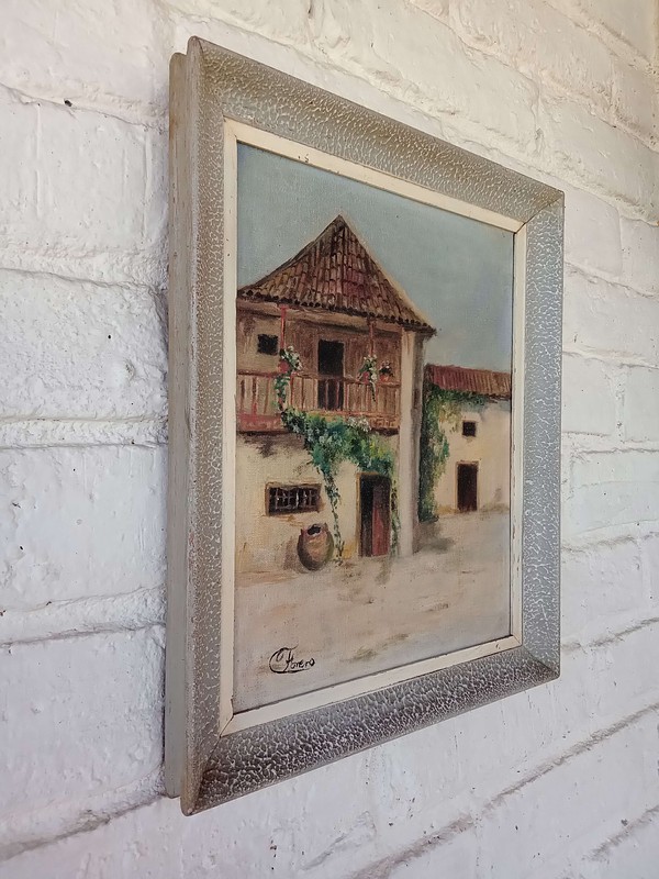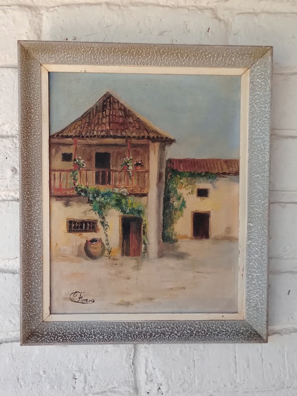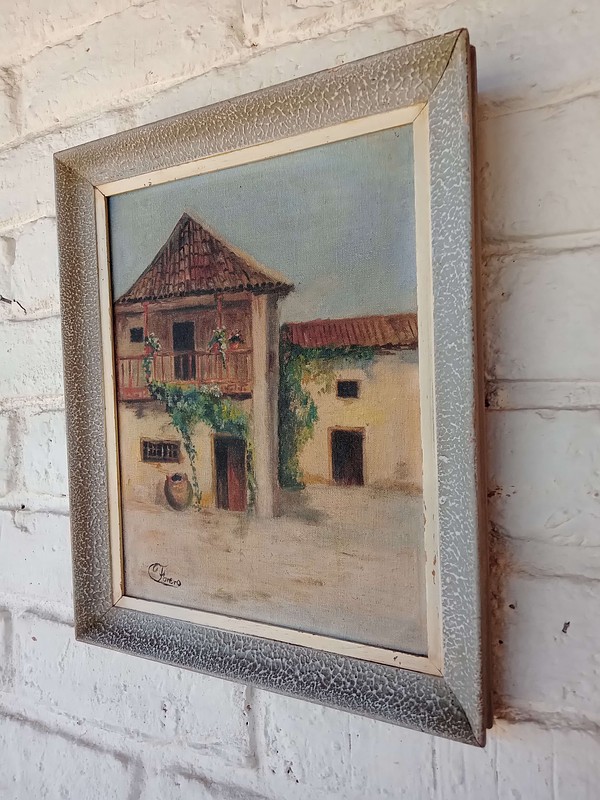 Original firmada por Forero / 37, representa una casa de la sabana de Bogotá, en la pintura se nota la influencia de la Escuela de la Sabana que surge en 1894 y continúa como un movimiento de paisajistas durante los inicios del S XX.