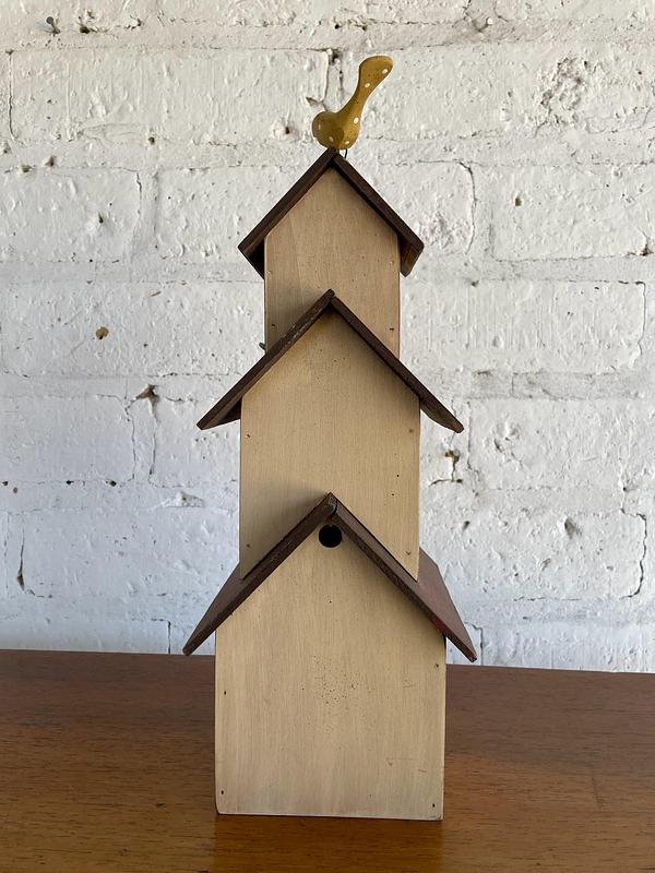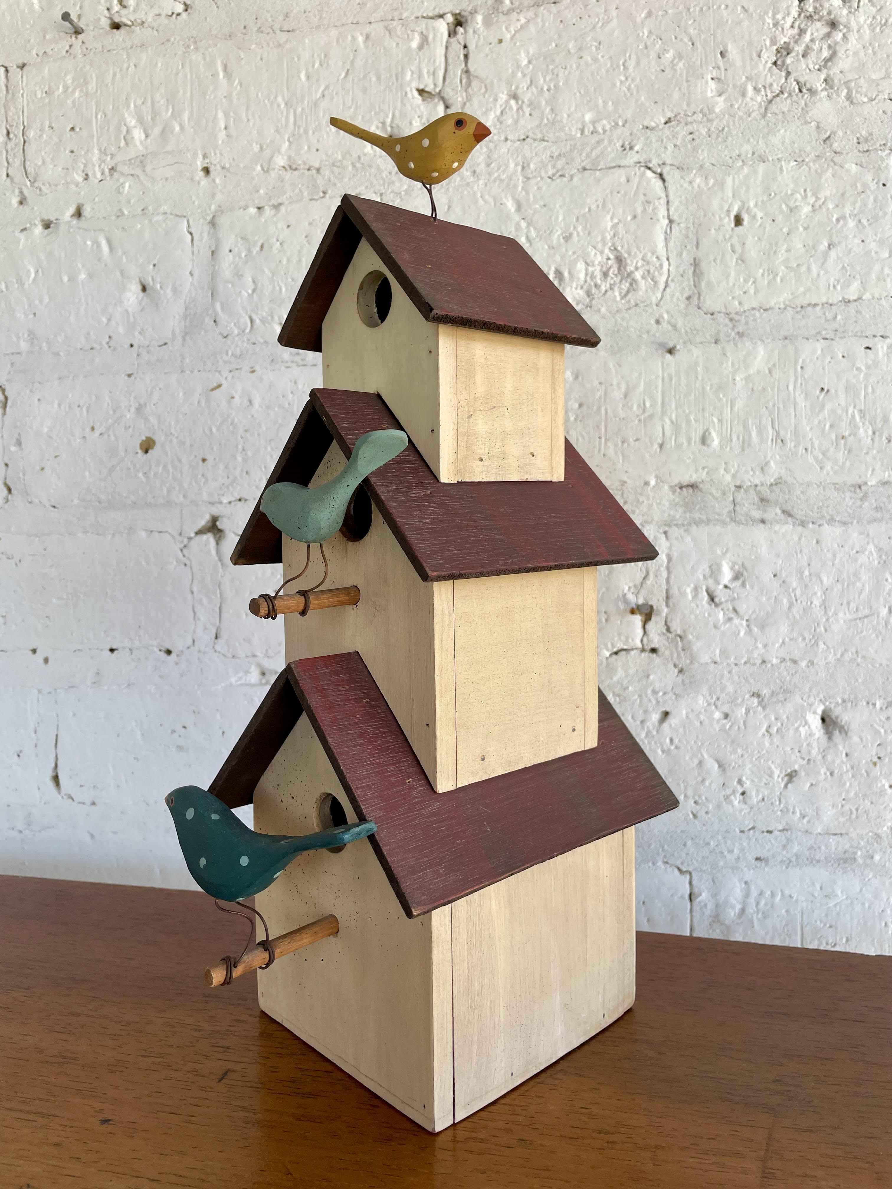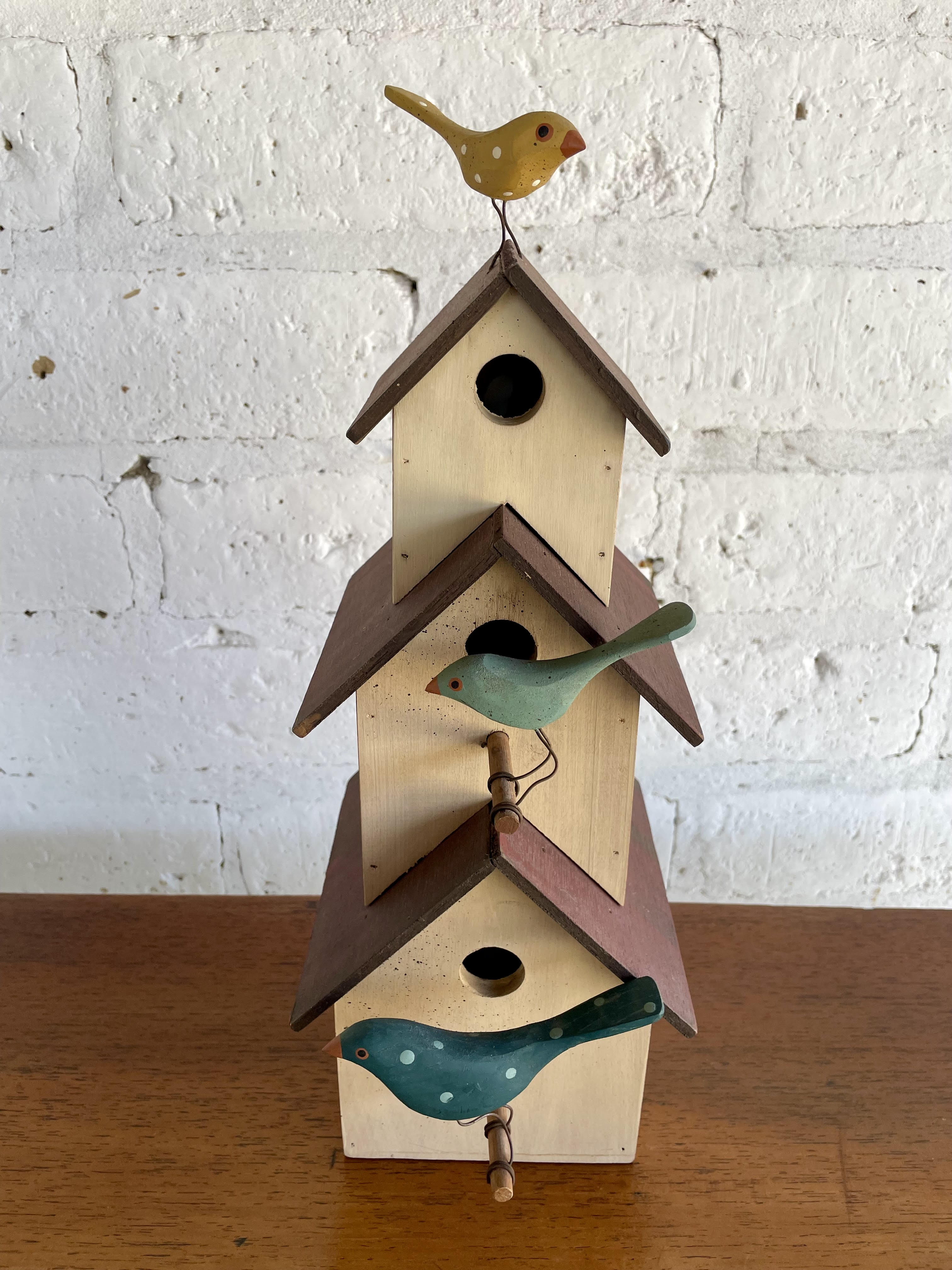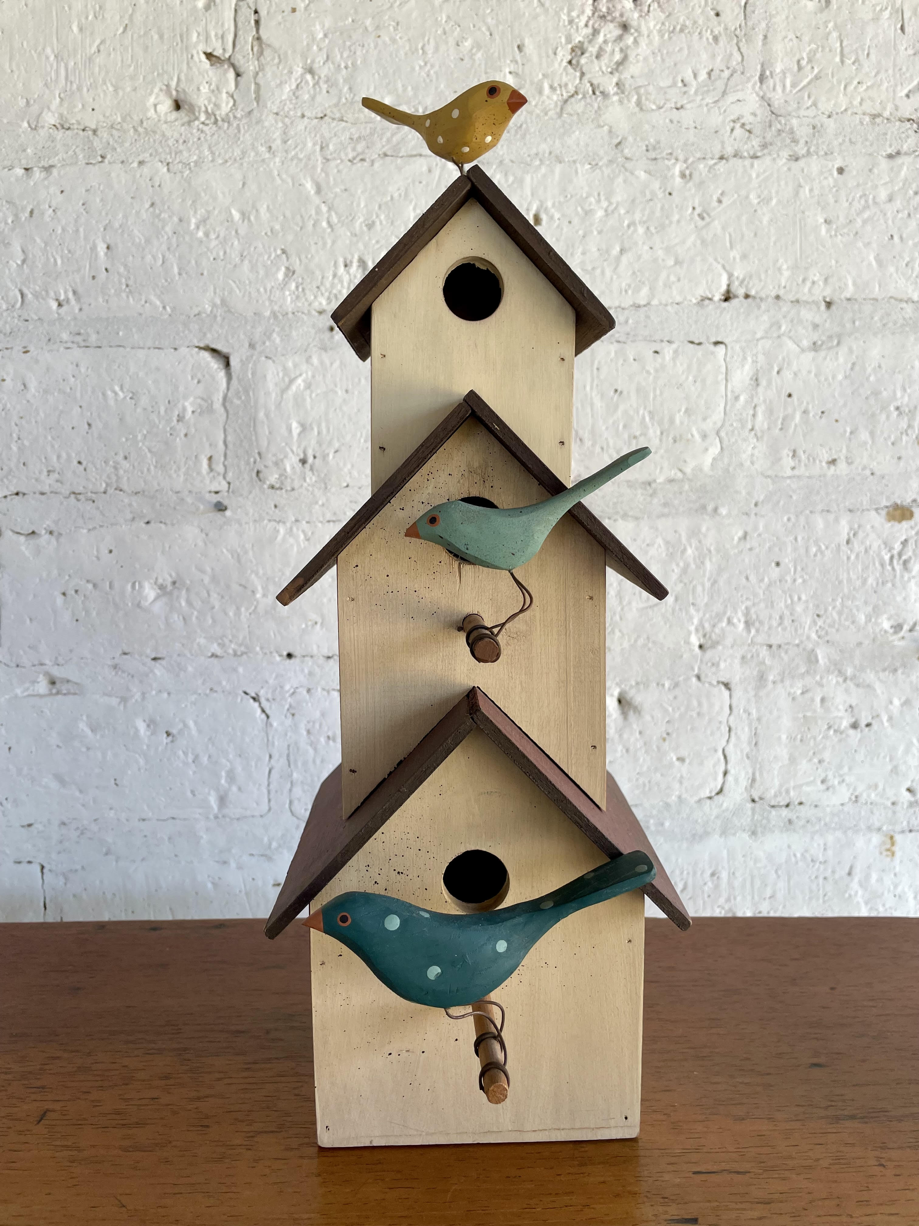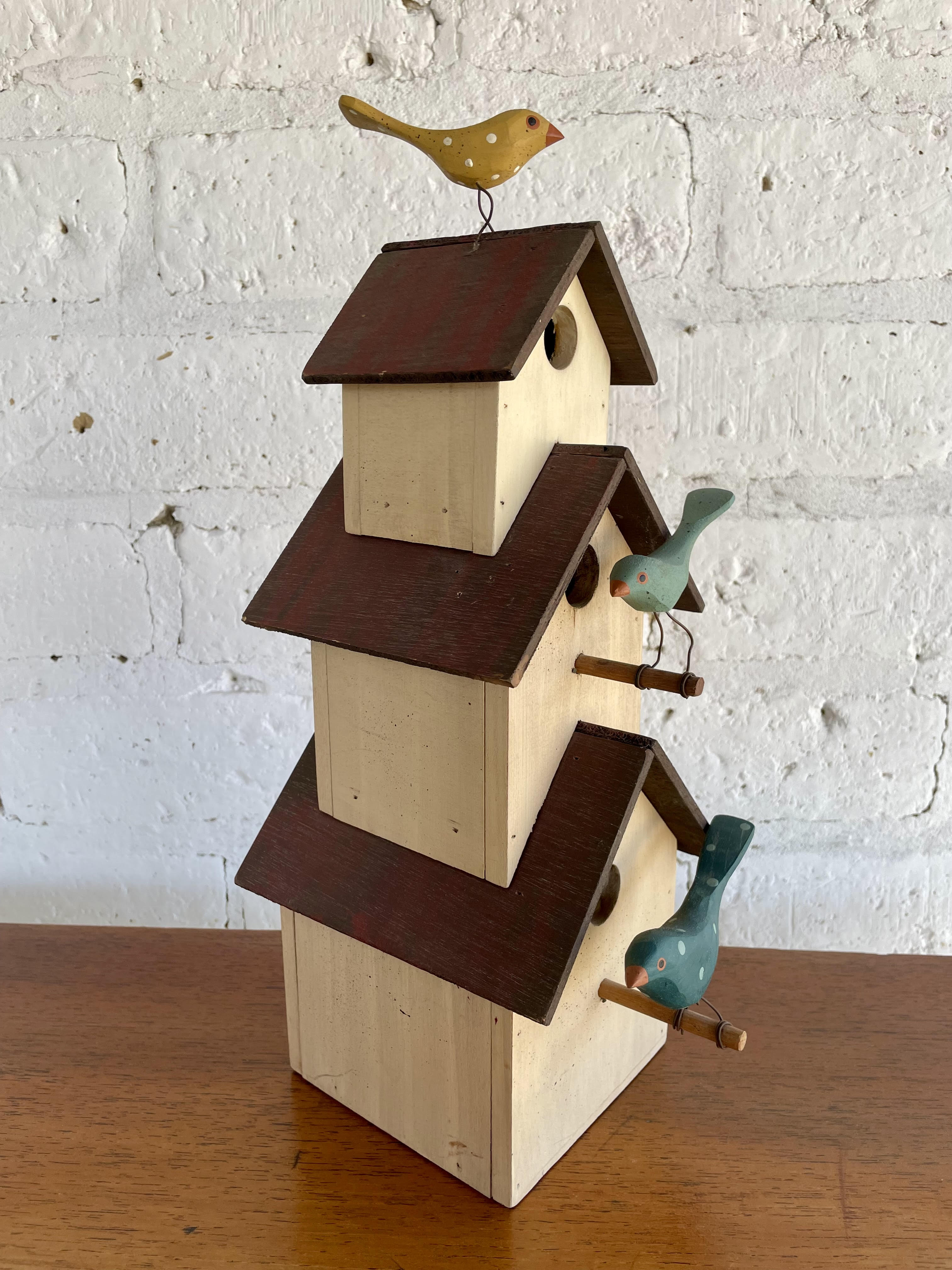 Casita elaborada artesanalmente decorada con 3 pajaritos tallados en madera.