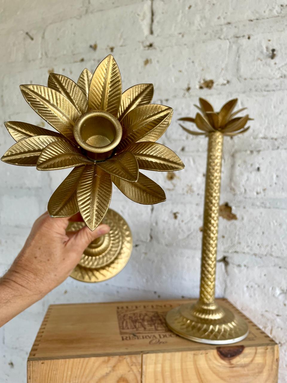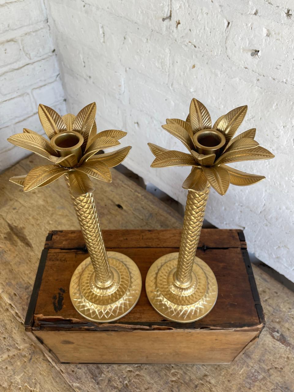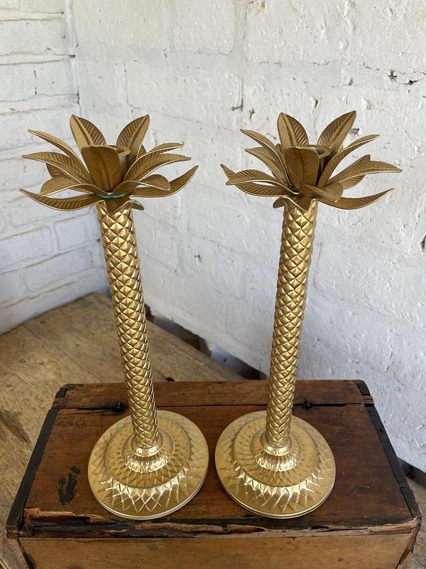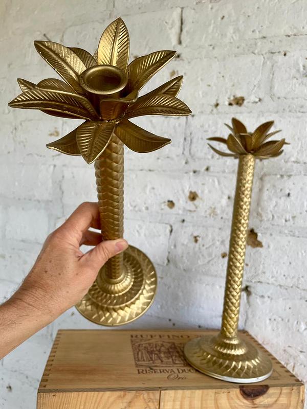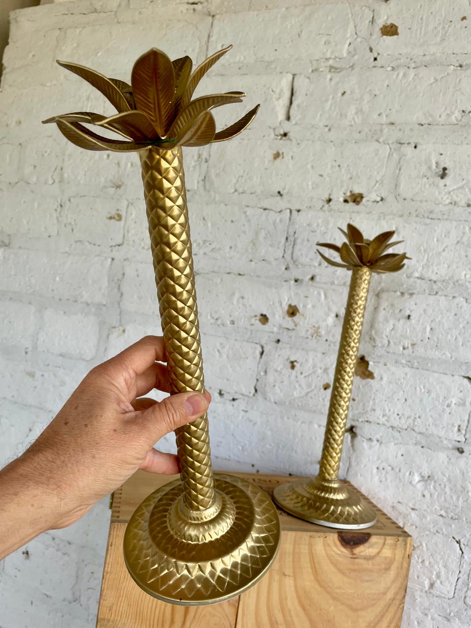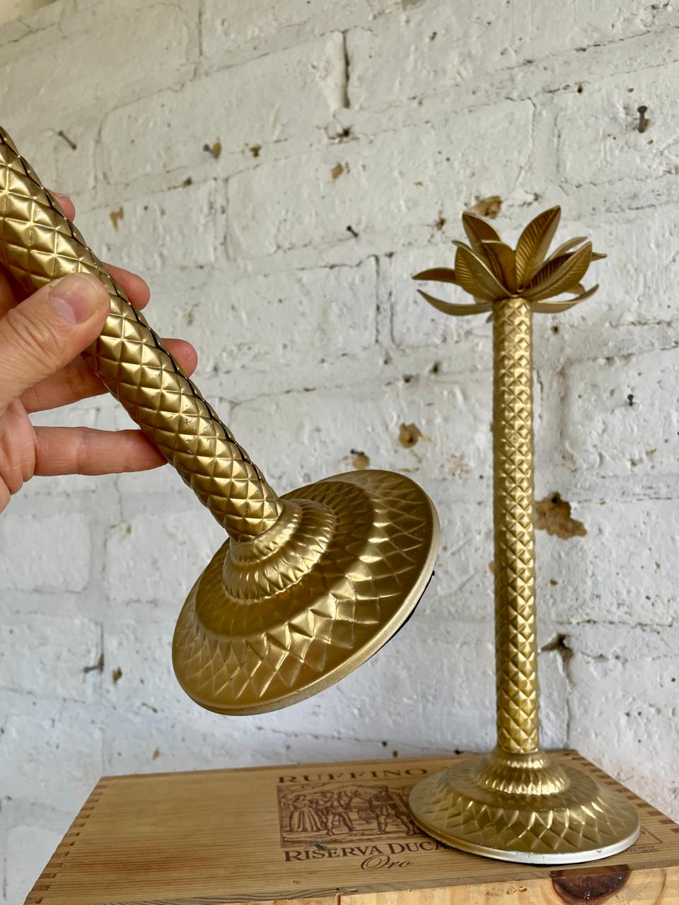 Pareja de candelabros metálicos de los años 80, la base está protegida con paño