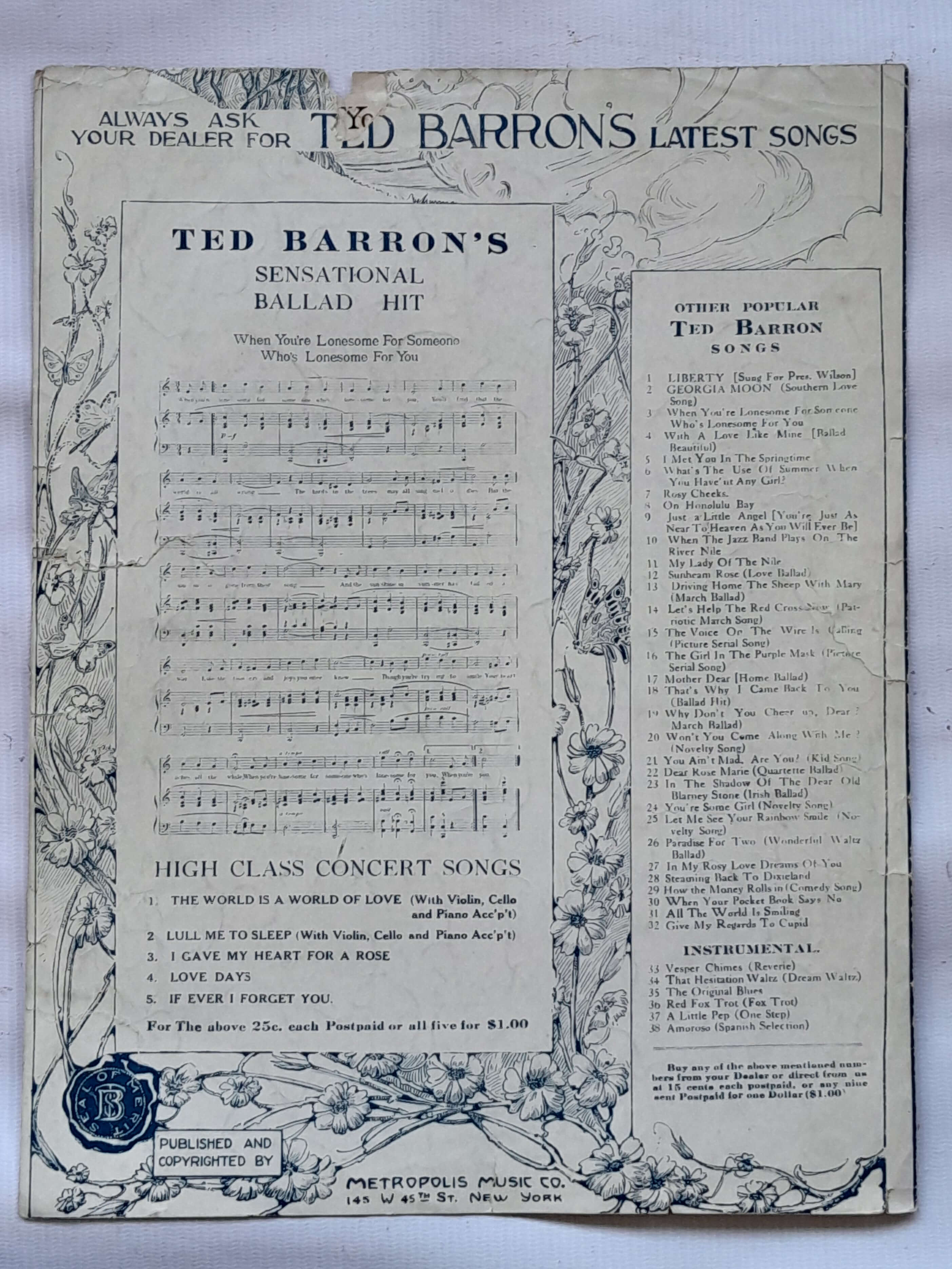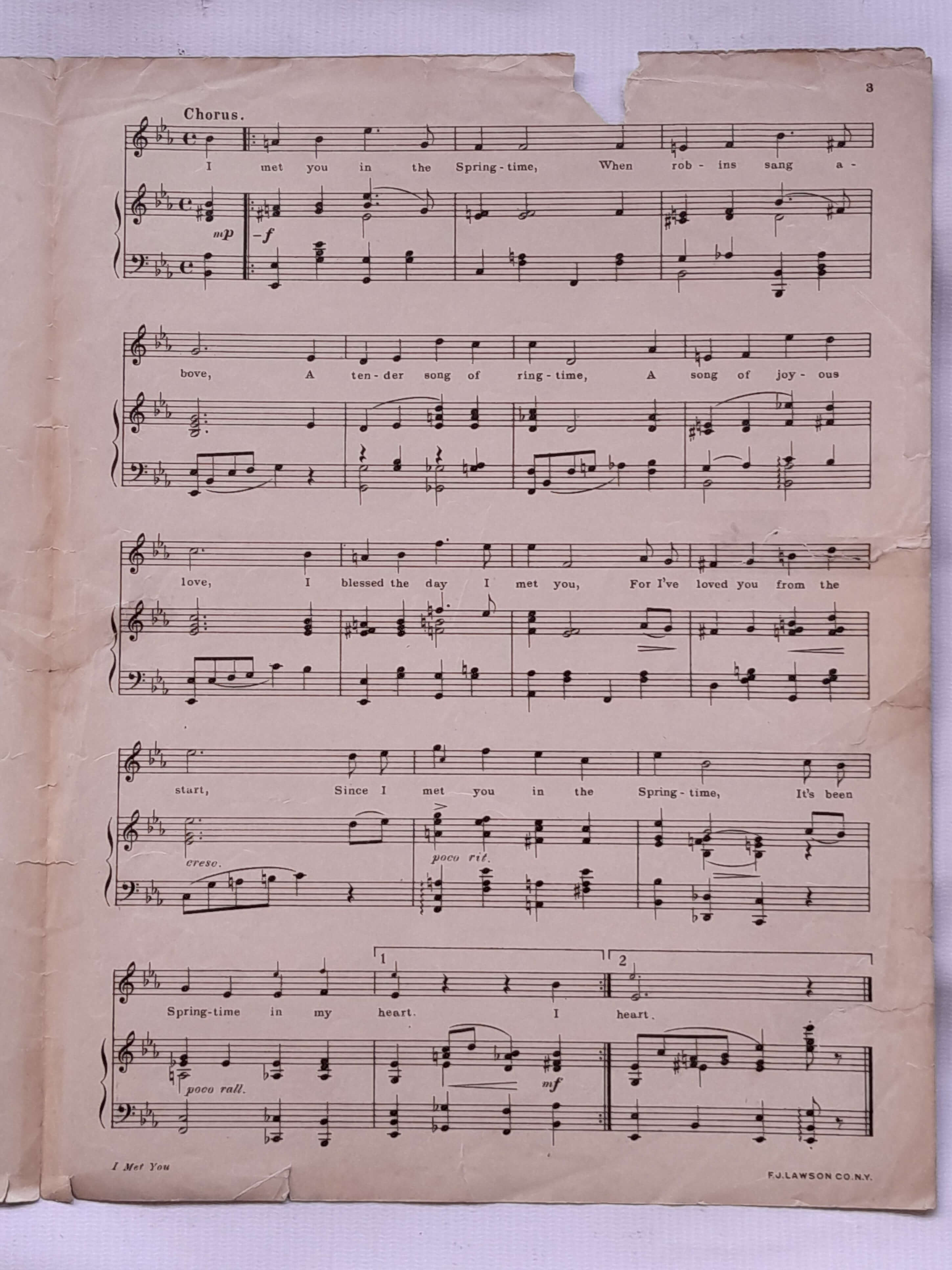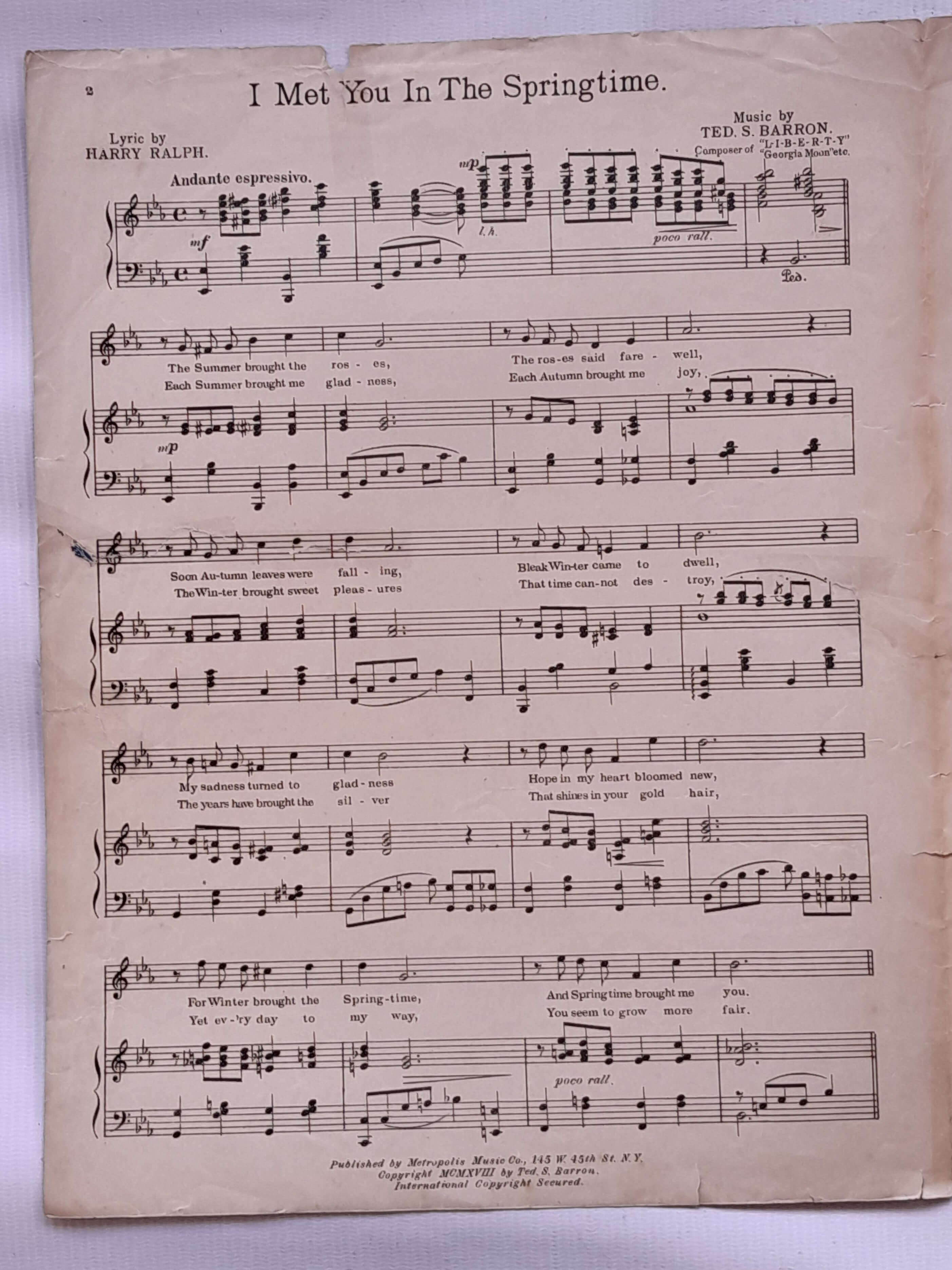 Partitura original de 4 páginas , tiene algunas rasgaduras reparadas con cinta pegante.