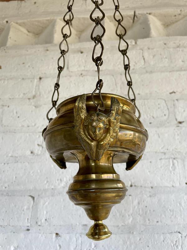 Las lámparas votivas se encuentran en los templos judíos, cristianos y musulmanes. Es muy probable que esta pieza se haya fabricado para una iglesia católica, donde la lámpara del santuario cuelga cerca del altar mayor y debe arder constantemente día y noche como símbolo de la presencia permanente de Dios.
