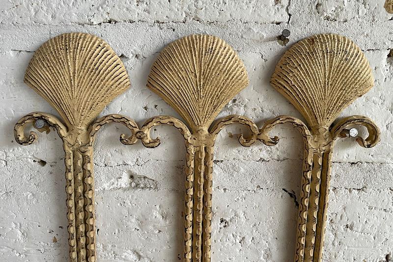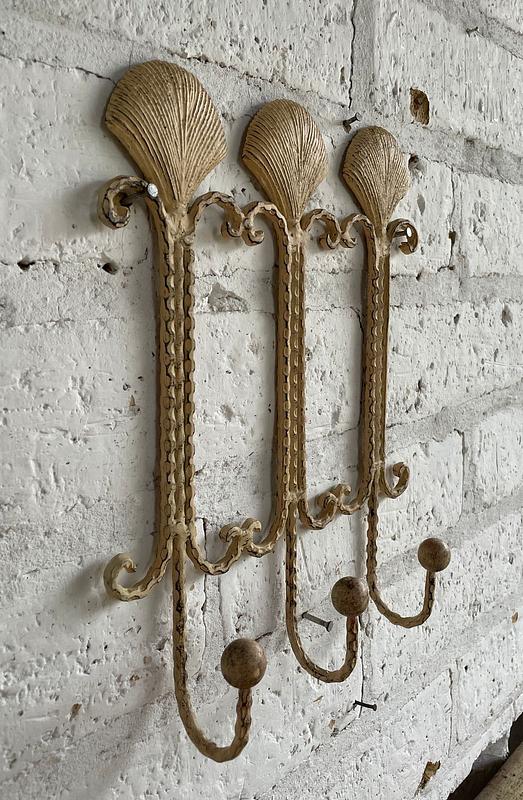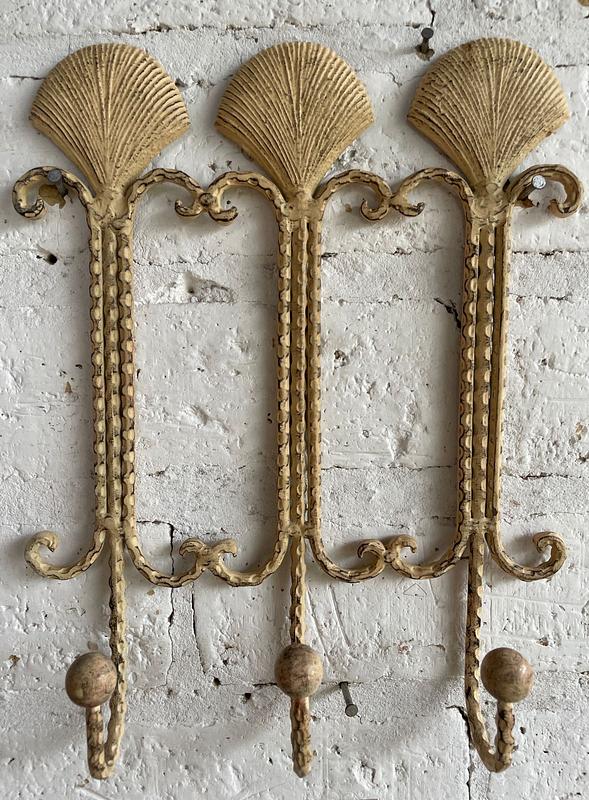 Perchero de 3 ganchos decorado con 3 conchas en la parte superior en hierro fundido.