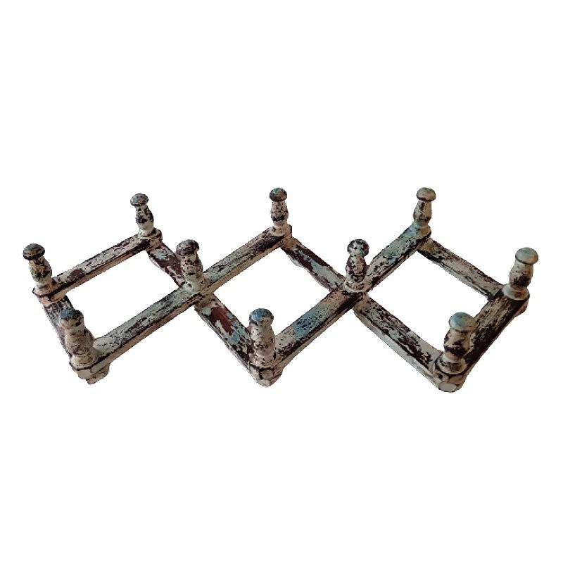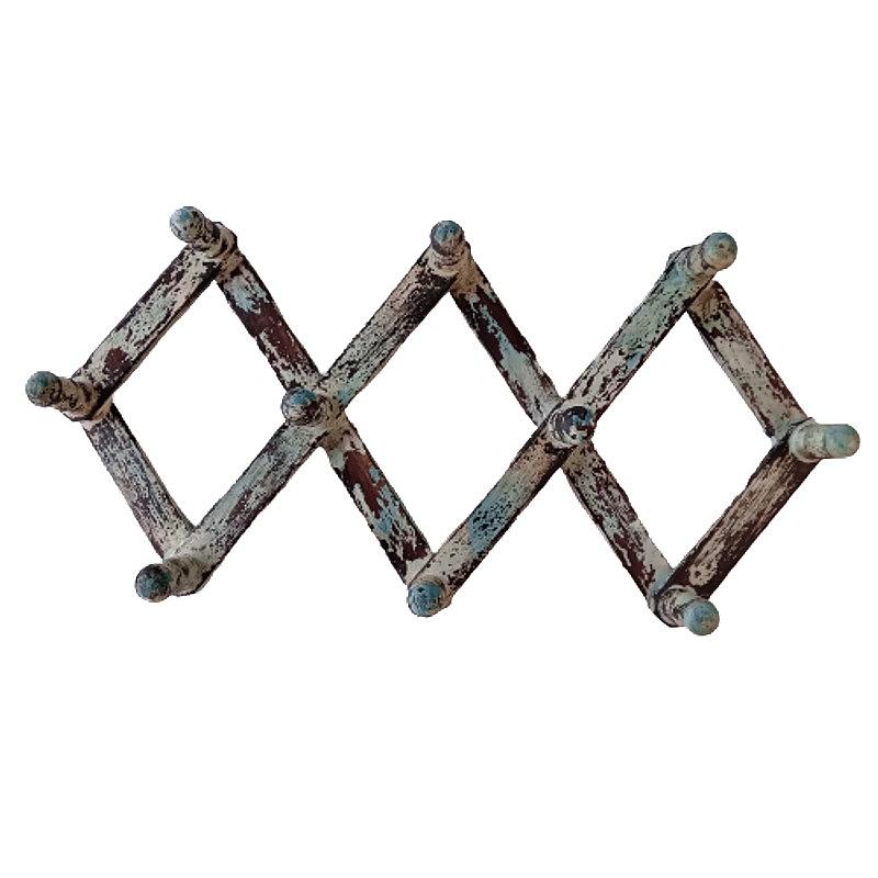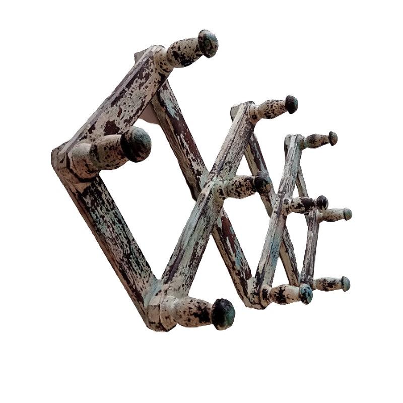Perchero elaborada con madera reciclada y pintura desgastada con 10 soportes.