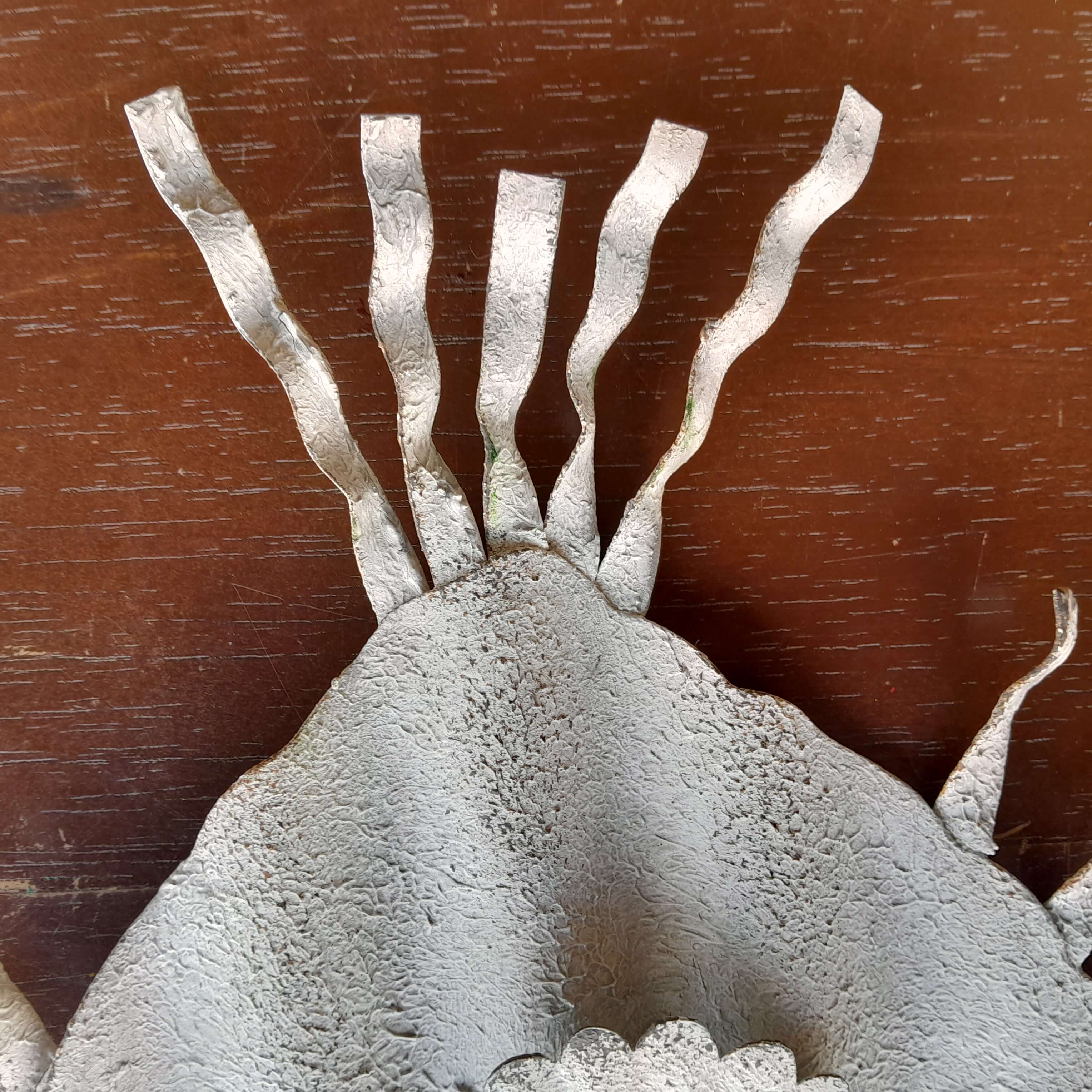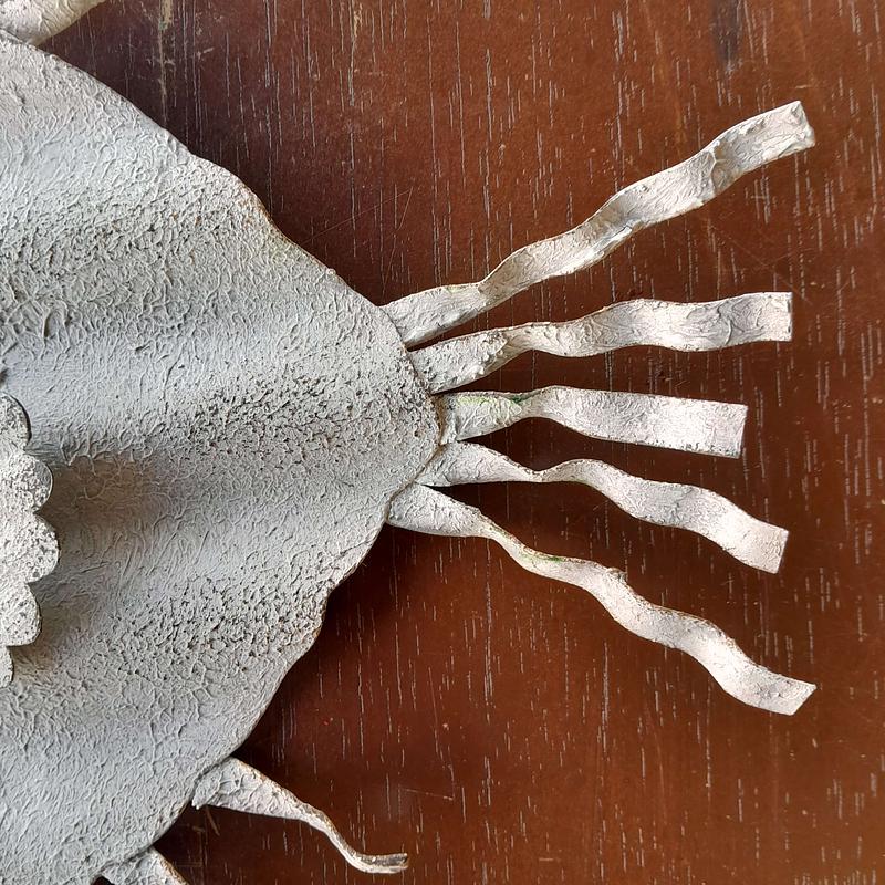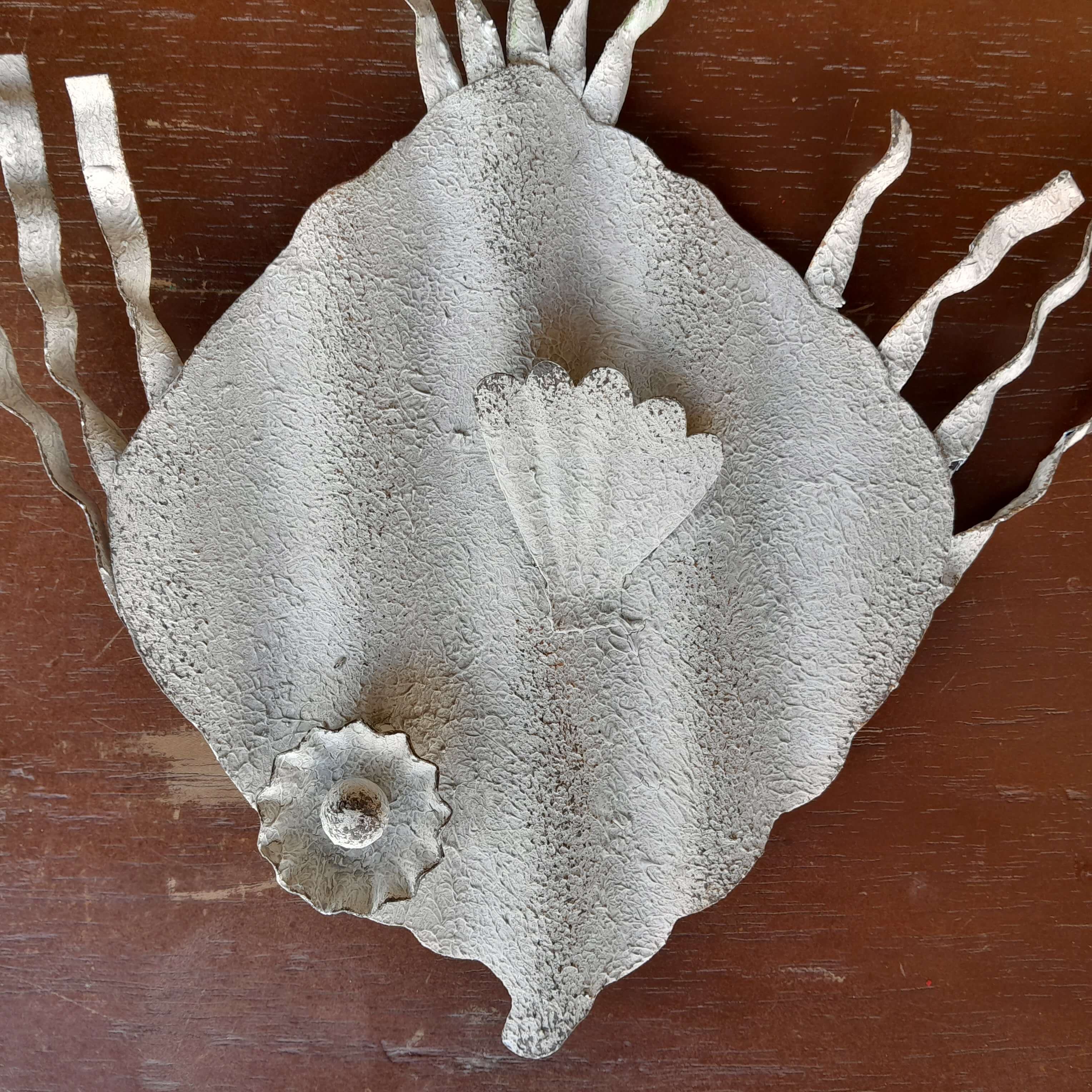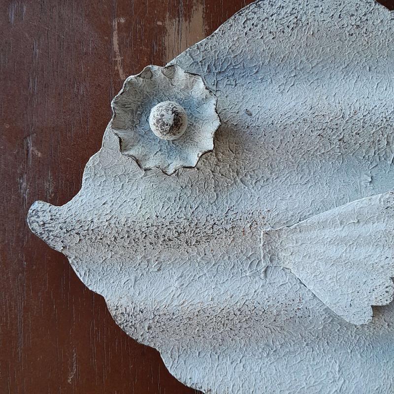 Pez artesanal elaborado en teja de zinc reciclada, el ojo se armó con una tapa de cerveza.
