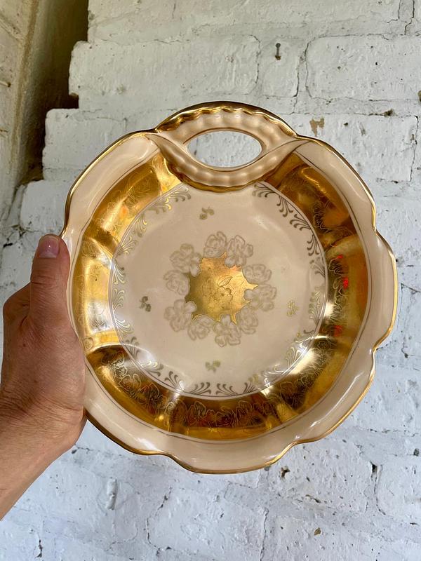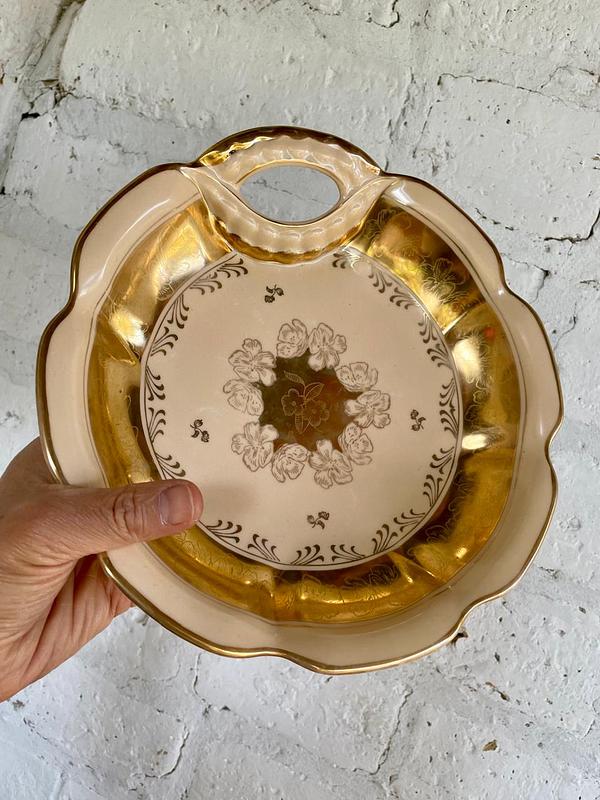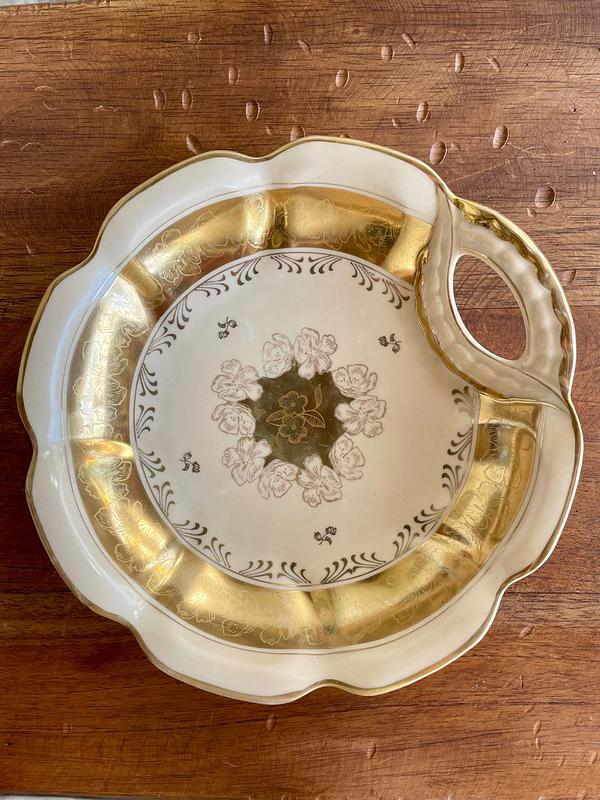 Plato en porcelana color marfil y dorado
