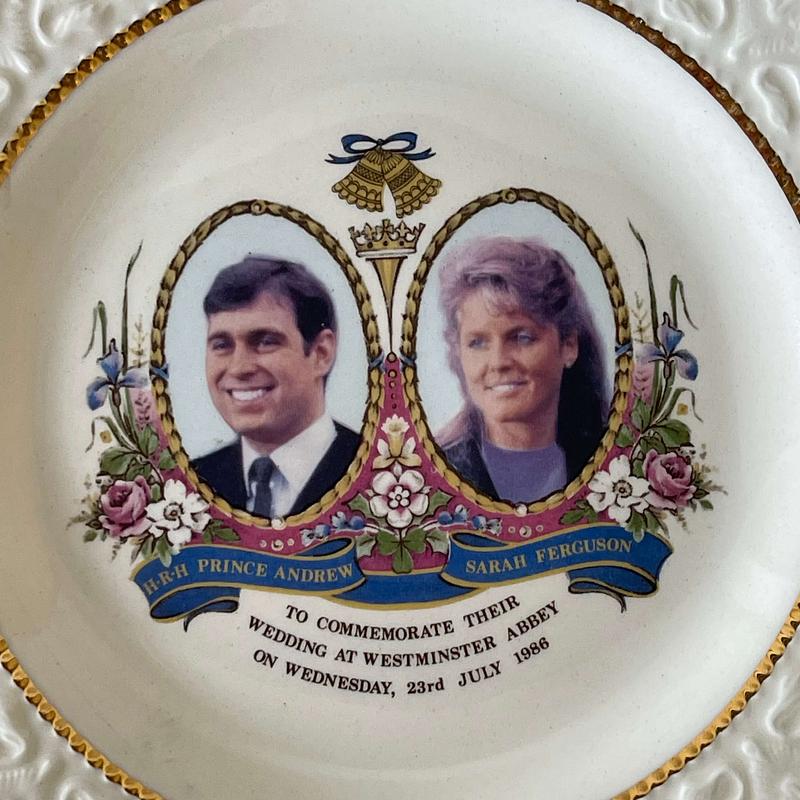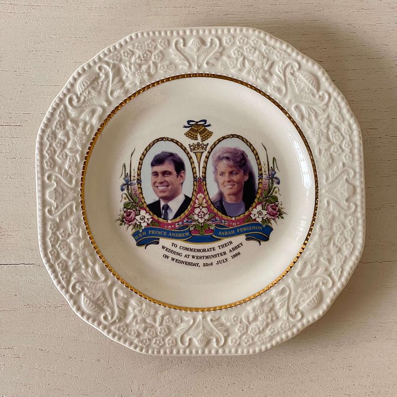 Plato inglés recuerdo de la boda del príncipe Andrés y Sara Ferguson 1986 en la Abadia de Westminster.