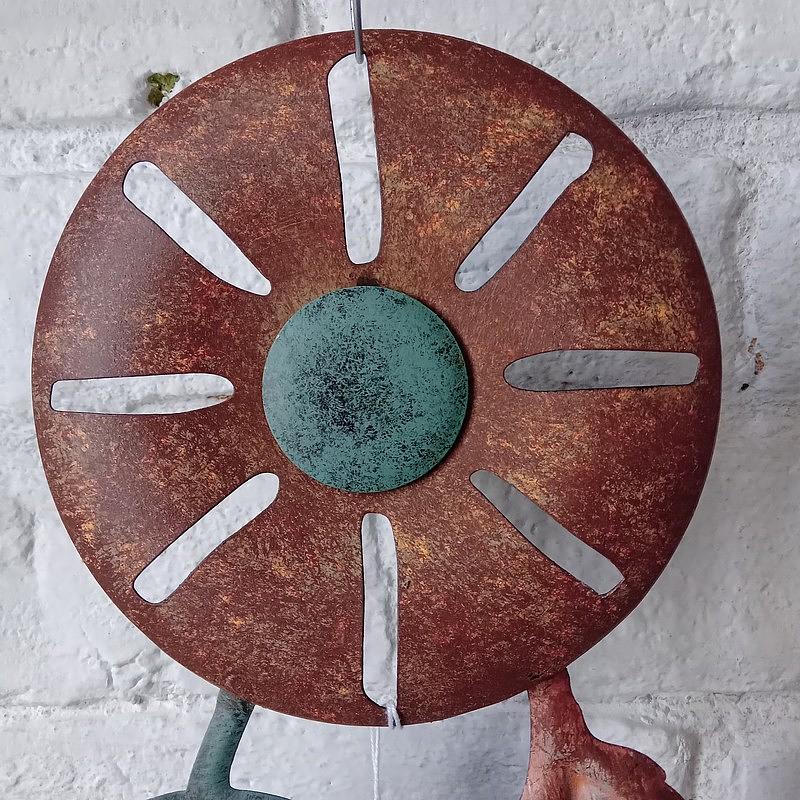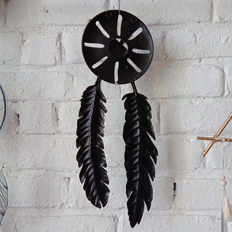 Curioso atrapasueños elaborado en metal y pintura horneada.