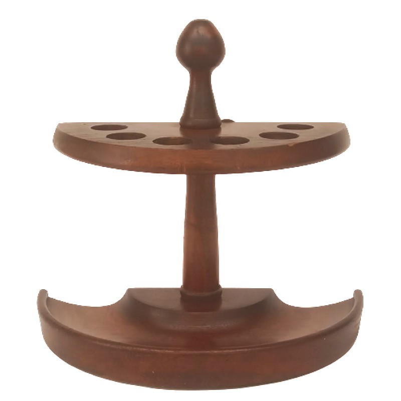 Antiguo pipero de mediados del S XX, en forma de media luna para 6 pipas en madera maciza color caoba.