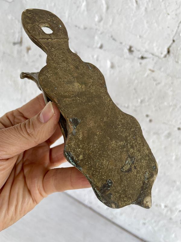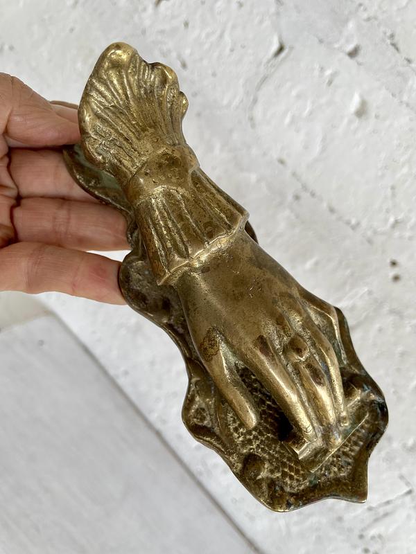 Gancho clip en hierro fundido con forma de mano victoriana, tiene un resorte que permirte abrir y cerra para sujetar los papeles.