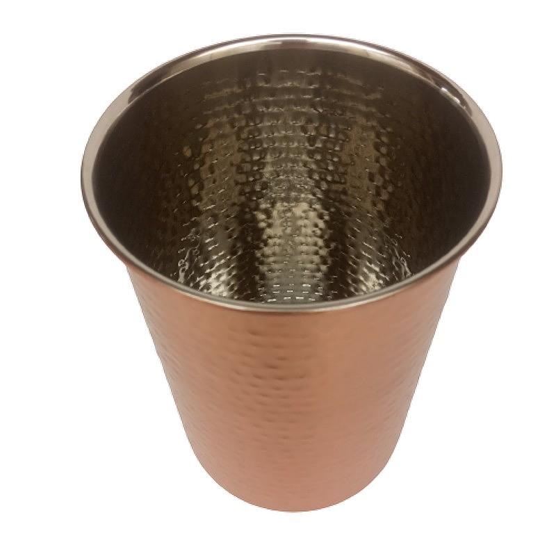 Fabricado en acero inoxidable, la parte exterior está recubierta en cobre.