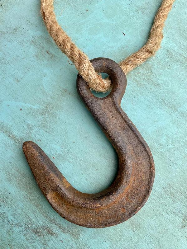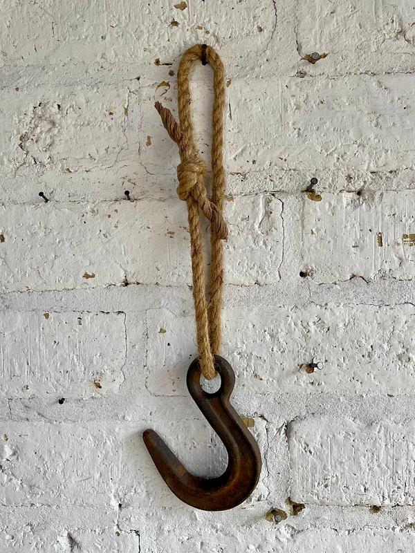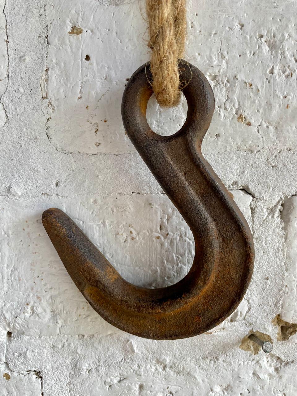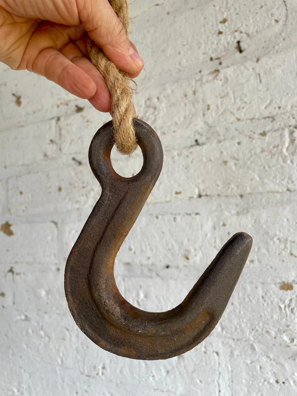 Gancho industrial de polea en hierro fundido de los años sesenta.