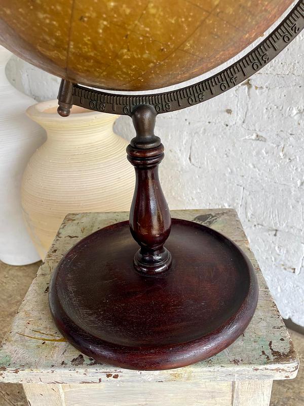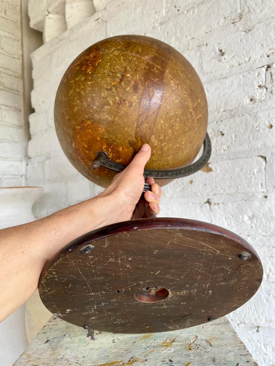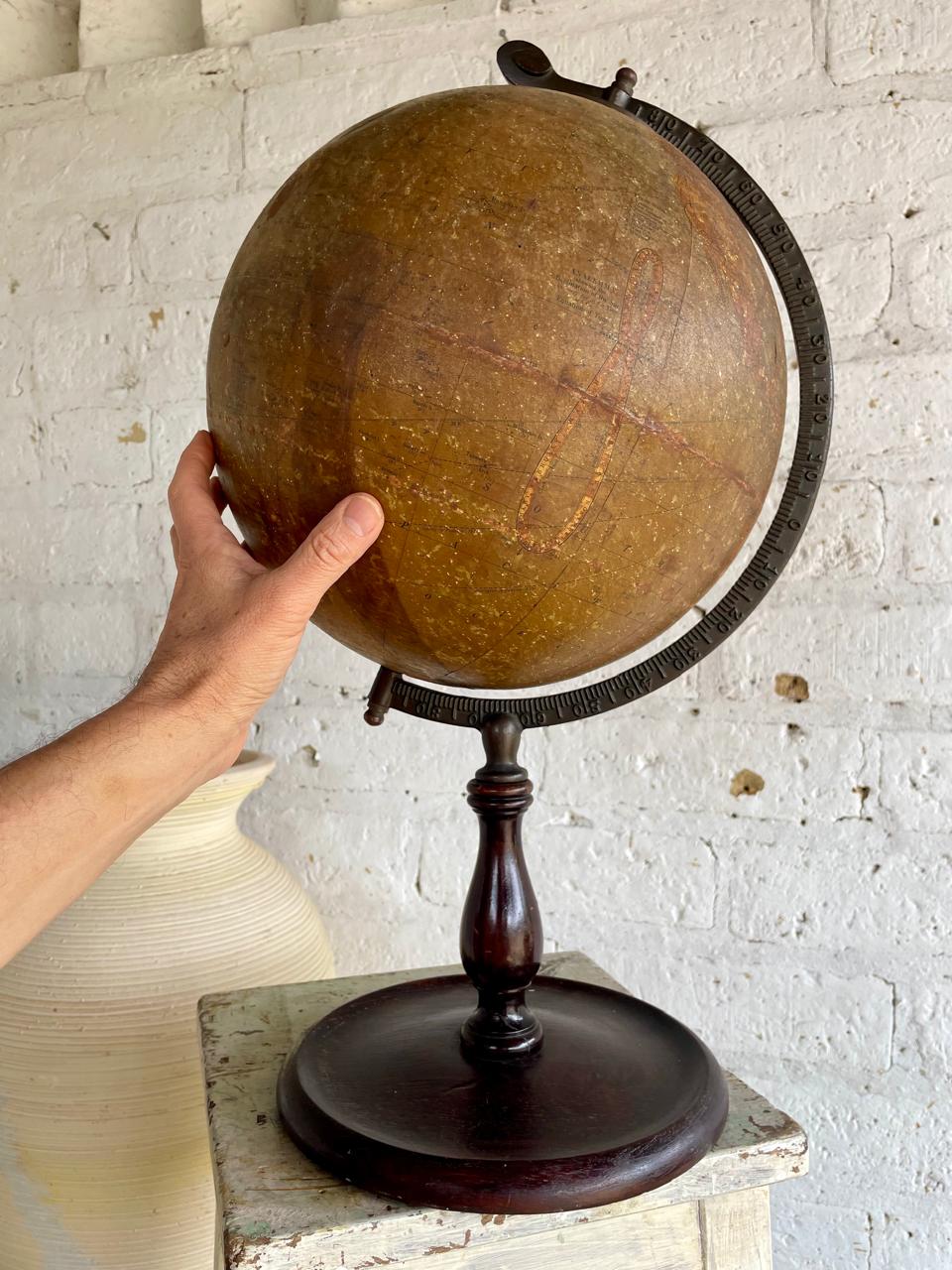 Globo terráqueo de principio del S. XX, fabricado en Estados Unidos por C.S. Hammond & Co. también conocida como Hammond Map o Hammond World Atlas Corporation, siendo una de las empresas editoras de mapas más reconocidas de U.S.A. en la primera mitad del siglo XX, a partir de los años cincuenta se dedicó a proporcionar tecnología cartográfica para cadenas de televisión como CNN y Headline News hasta la aparición de la cartografía digital.