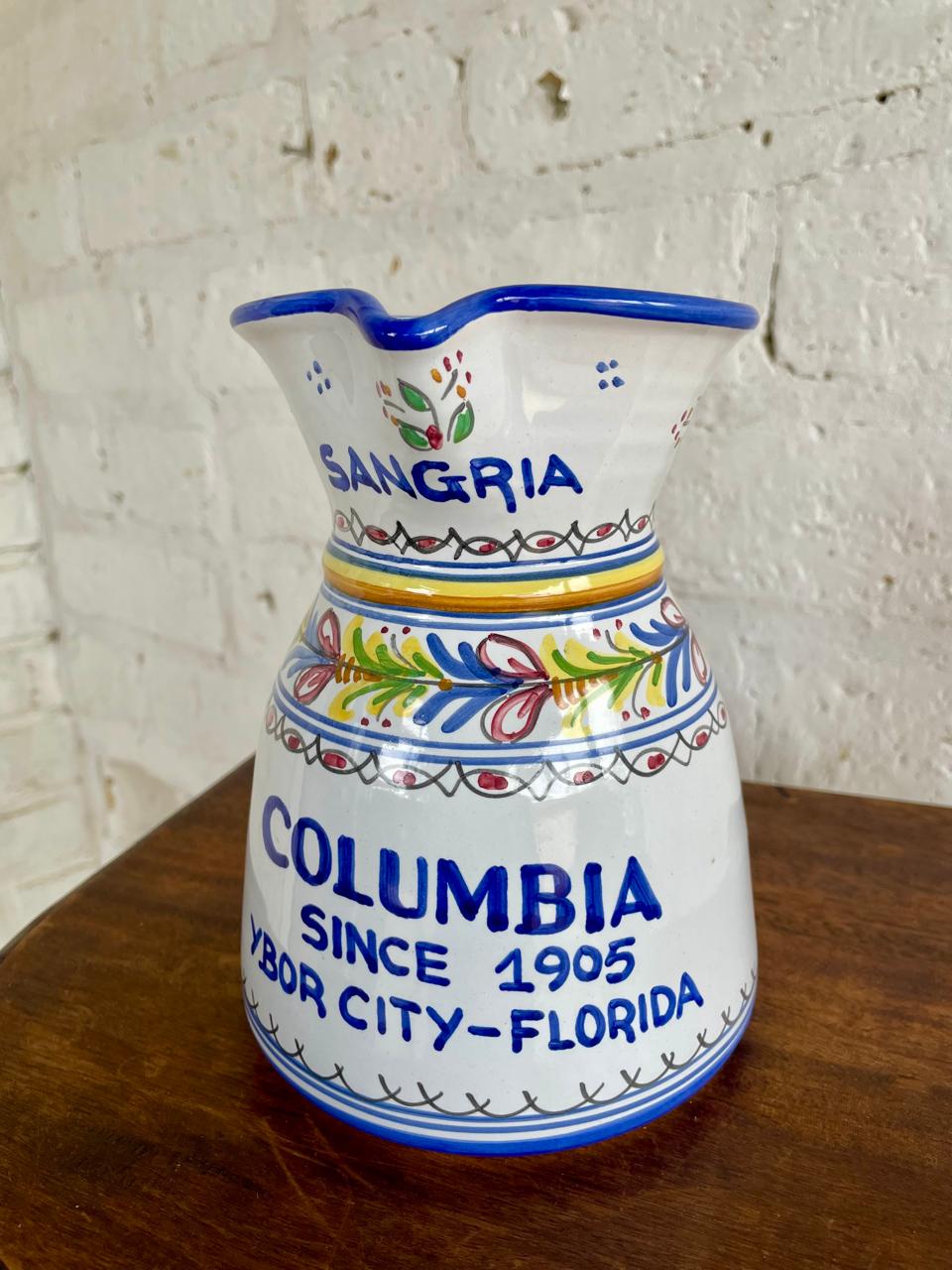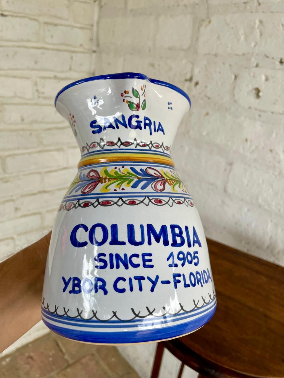 Recipiente utilizado para servir la sangría en el Restaurante Español "Columbia" ubicado en el distrito histórico de Ybor City, en Tampa, FL, USA., tradicional desde hace más de 100 años y considerado uno de los restaurantes de comida española más grande del mundo. La jarra se encuentra en buen estado.