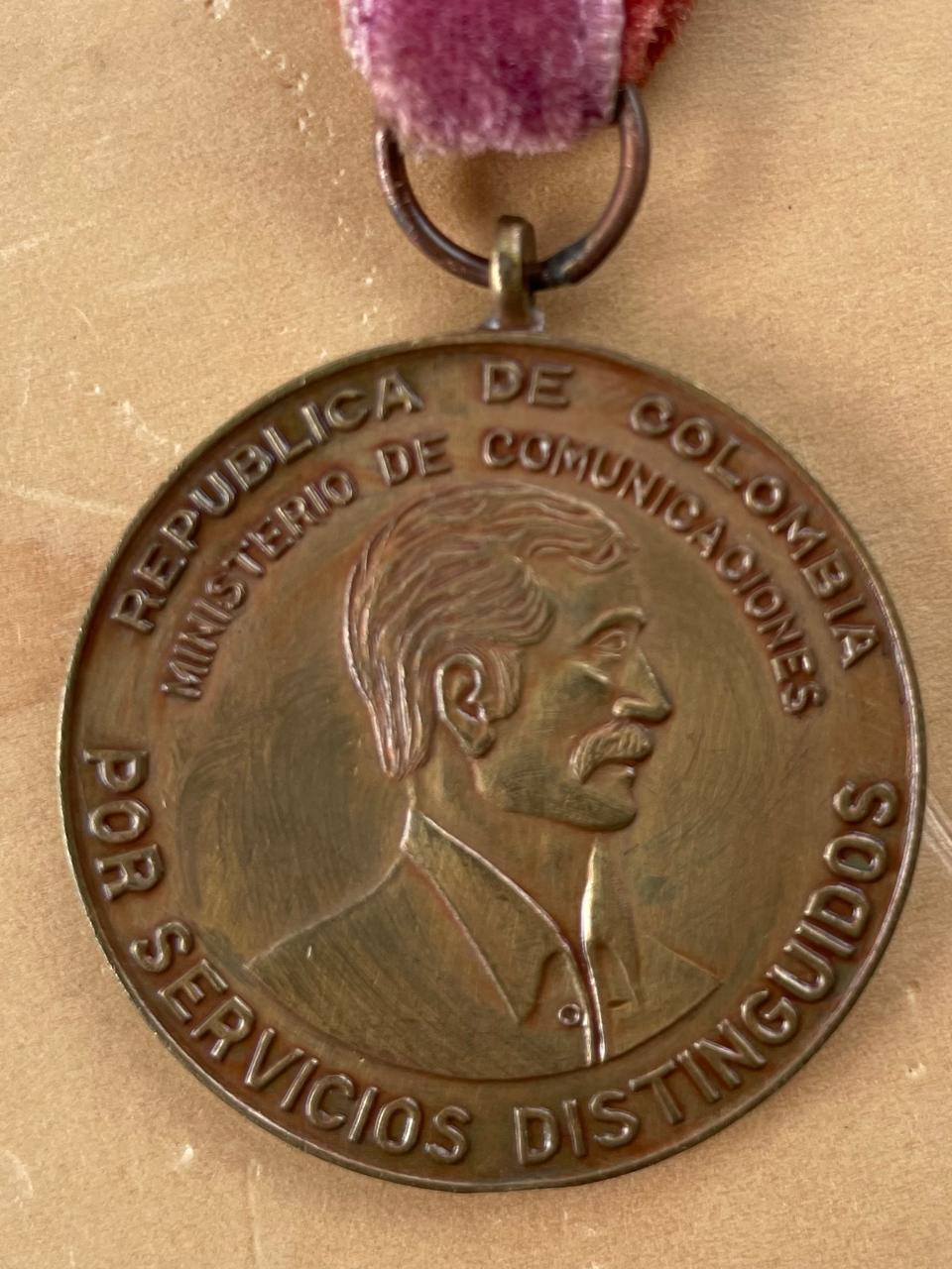 Medalla de la década de los sesenta del Ministerio de Comunicaciones por servicios distinguidos. La medalla se encuentra en buen estado, la cinta tiene desgaste.