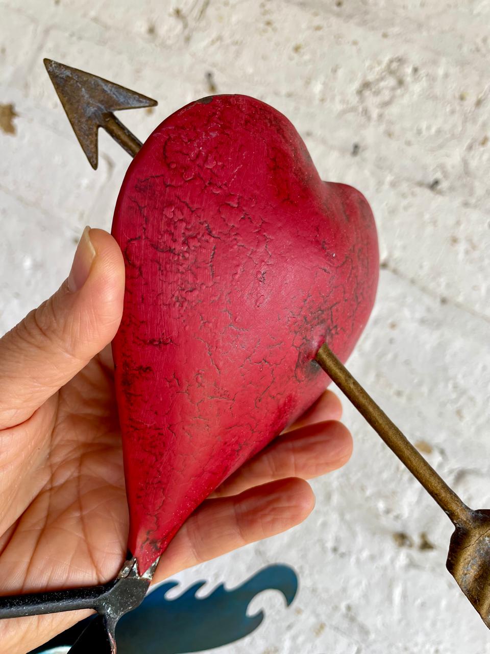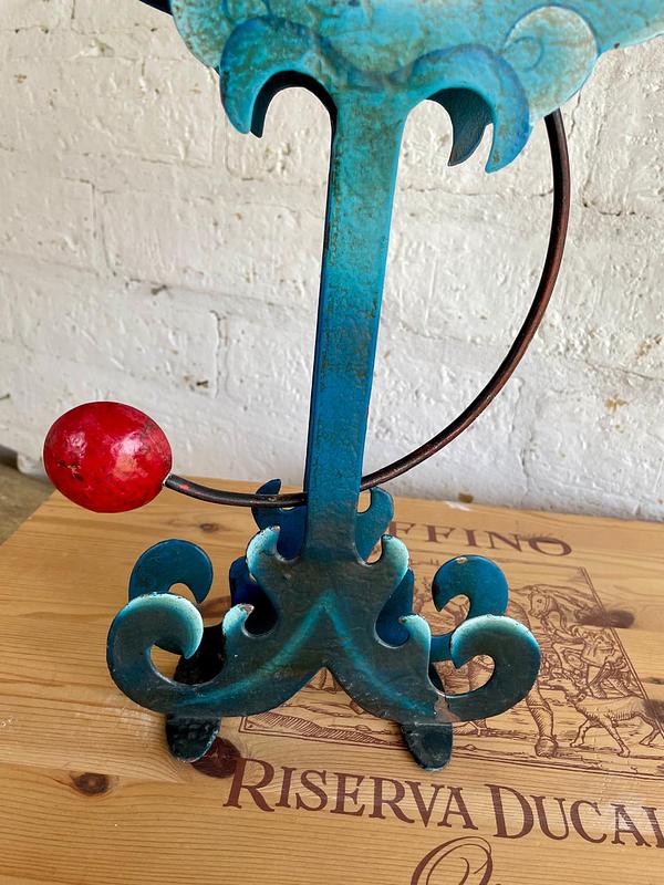 Figura balancín metálica de corazón, mantiene el equilibrio apoyado sobre una base y regulado por el péndulo. Elaborado artesanalmente en Indonesia en los años noventa y decorado con pintura desgastada. Reproduce un antiguo juguete. Se encuentra en buen estado con desgastes en la pintura producido por el uso y el paso del tiempo.