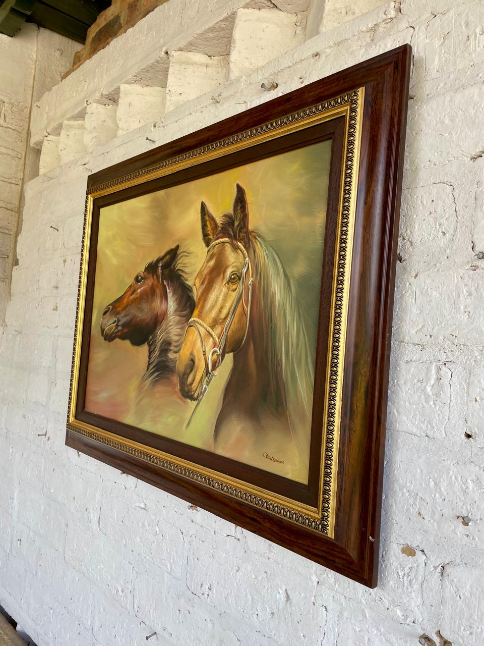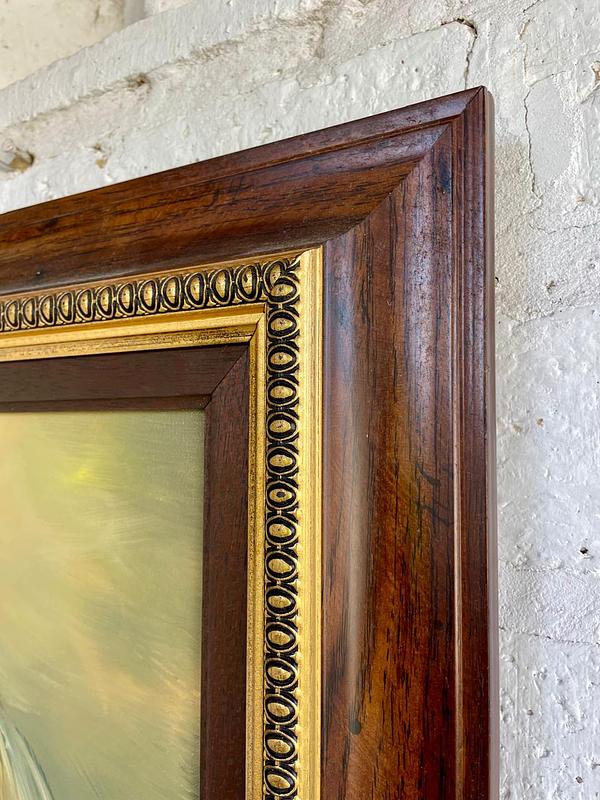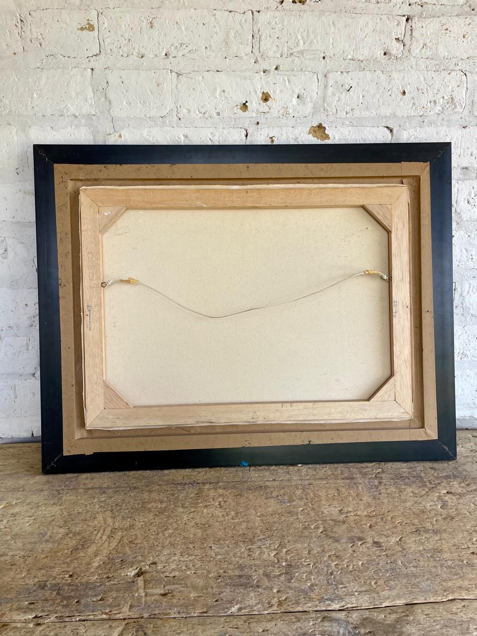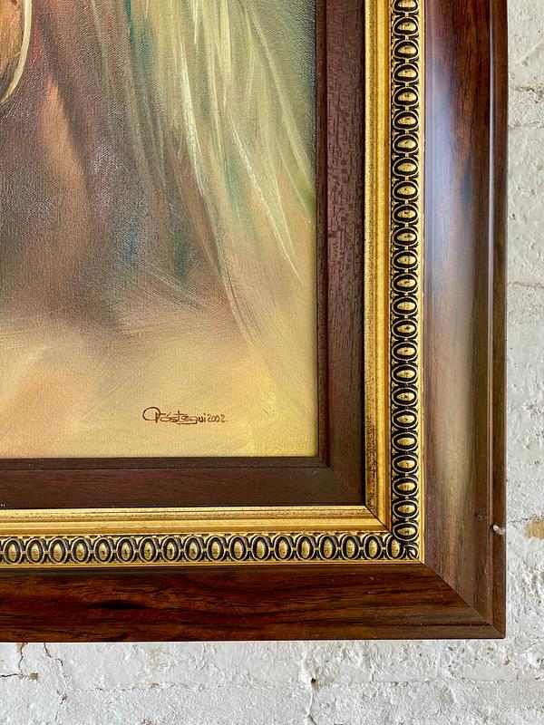 Pintura original óleo sobre lienzo del artista colombiano Alejandro Oróstegui, enmarcada con moldura de poliuretano. Firmado por el artista en 2020. Se encuentra en buen estado.