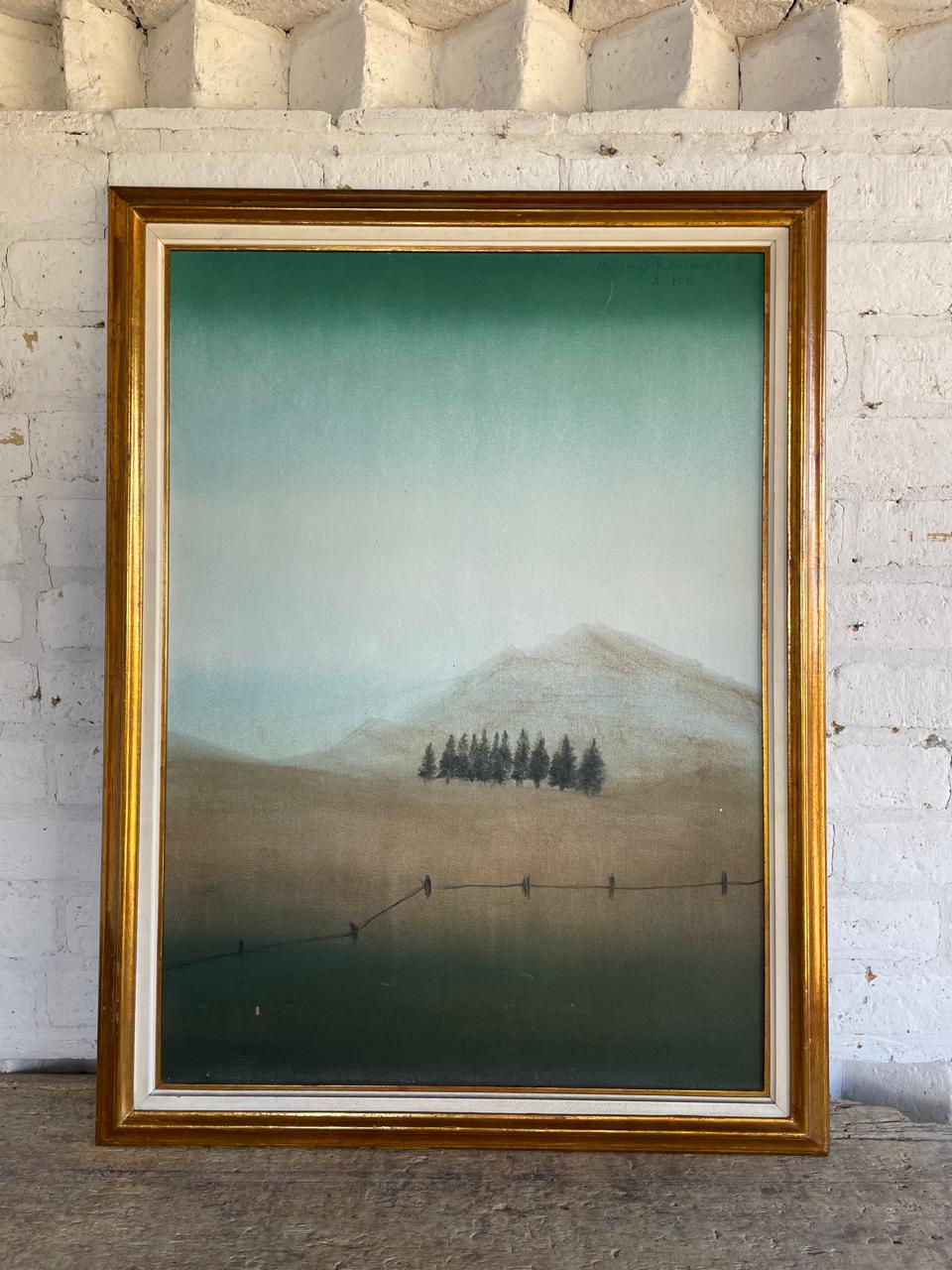Oleo original firmado por Montoya Romanowsky, enmarcada en moldura de madera hojillada. Se encuentra en buen estado con algunas pequeñas rayaduras en el óleo y desgastes en el hojillado del marco.