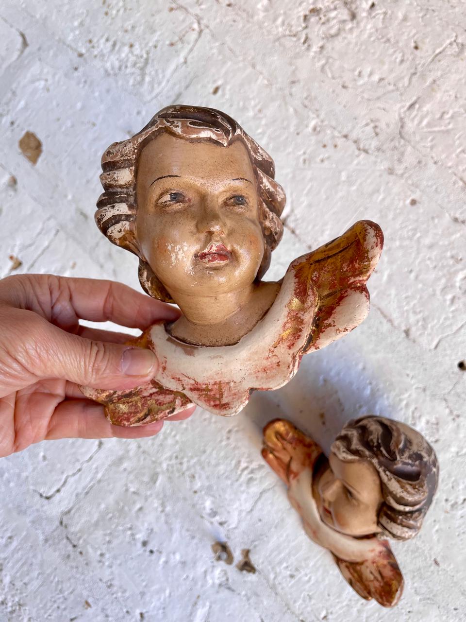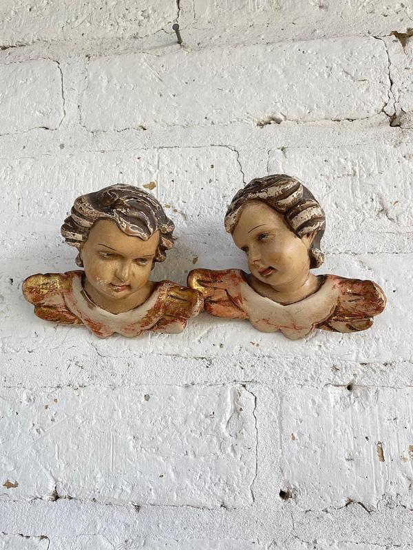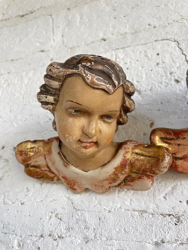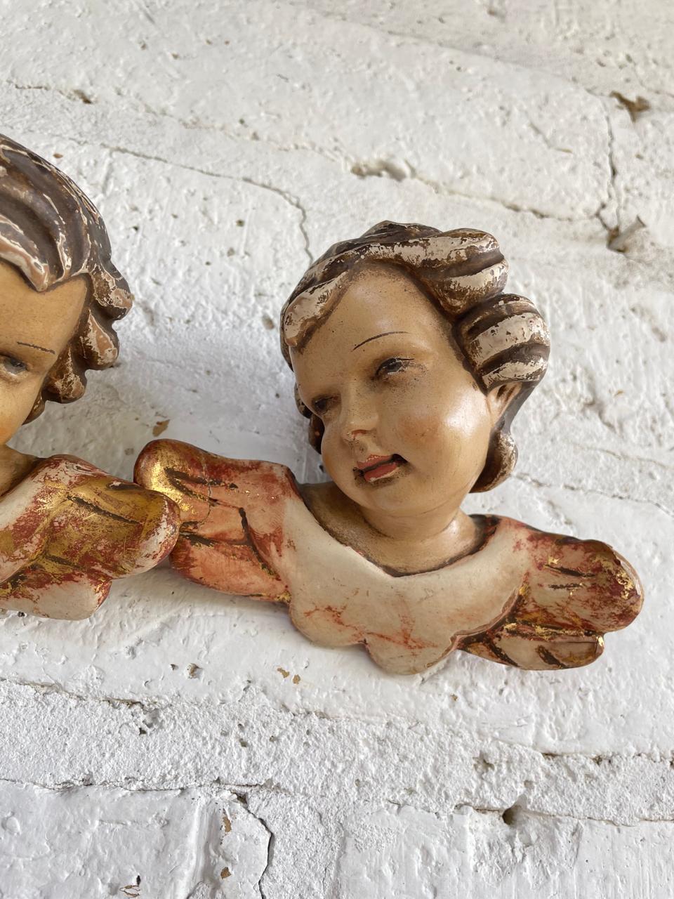 Pareja de ángeles Austríacos de estilo barroco de principio del S XX tallados en madera y policromados. Tienen el desgaste por el uso y el paso del tiempo. En la parte trasera está registrado sobre la madera el lugar de origen