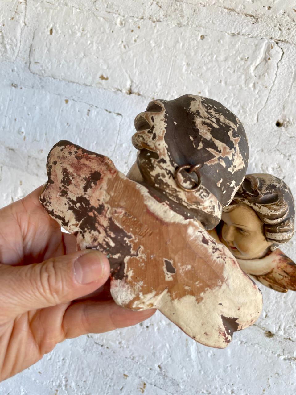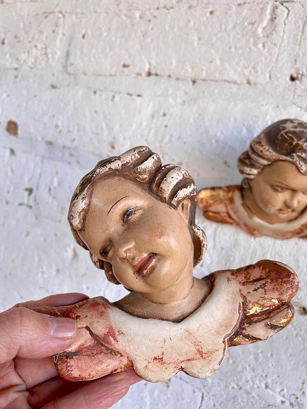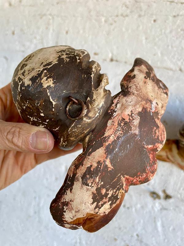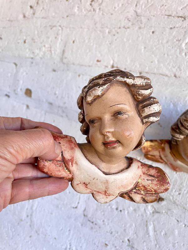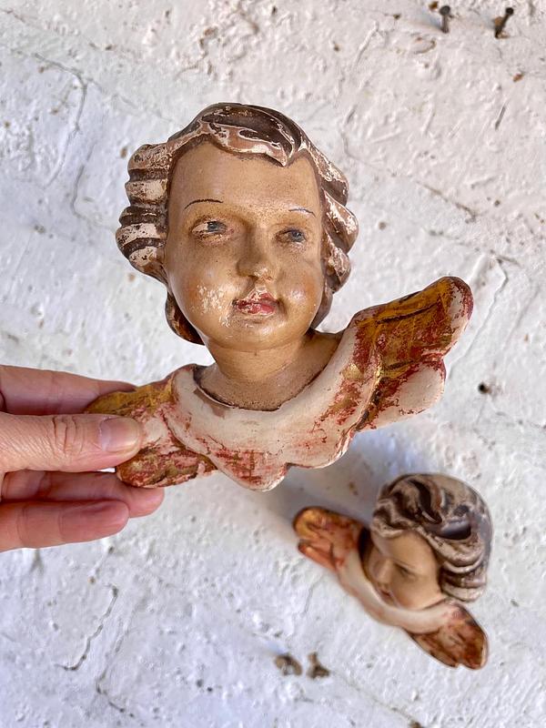 Pareja de ángeles Austríacos de estilo barroco de principio del S XX tallados en madera y policromados. Tienen el desgaste por el uso y el paso del tiempo. En la parte trasera está registrado sobre la madera el lugar de origen