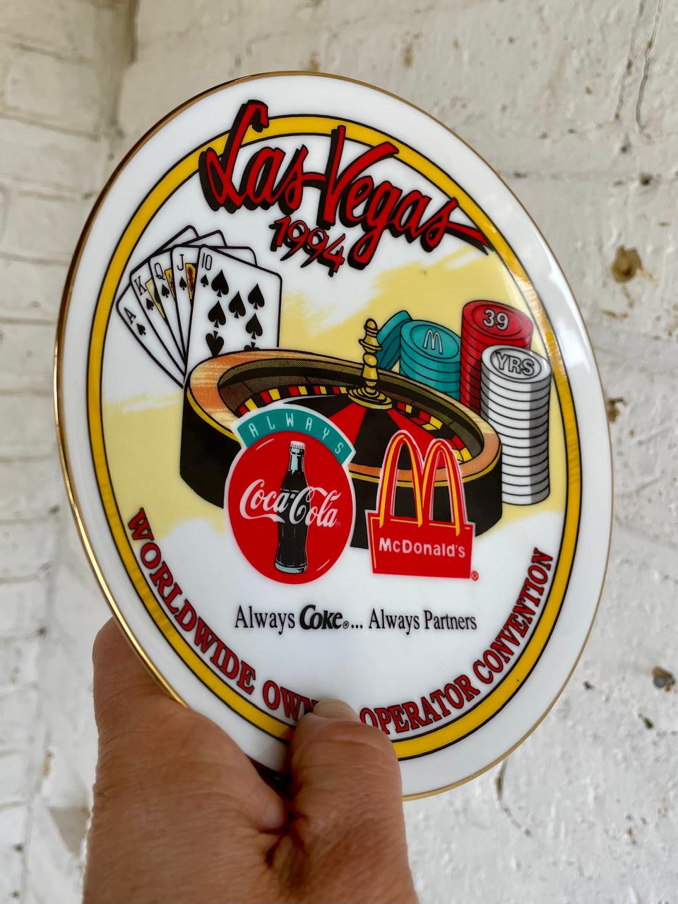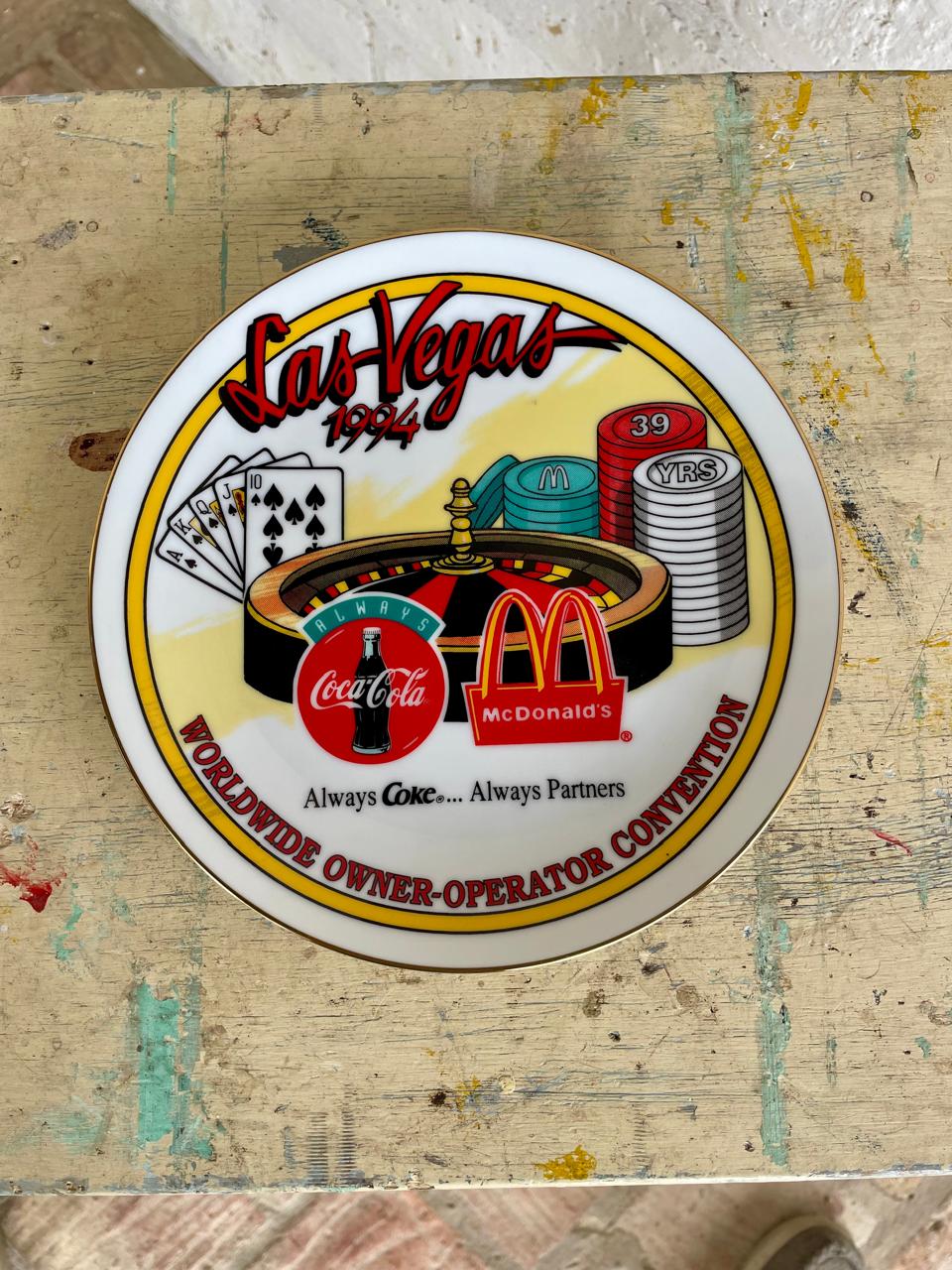 Plato conmemorativo de la convención de propietarios y operadores de McDonald's y Coca Cola de 1994 en Las Vegas.