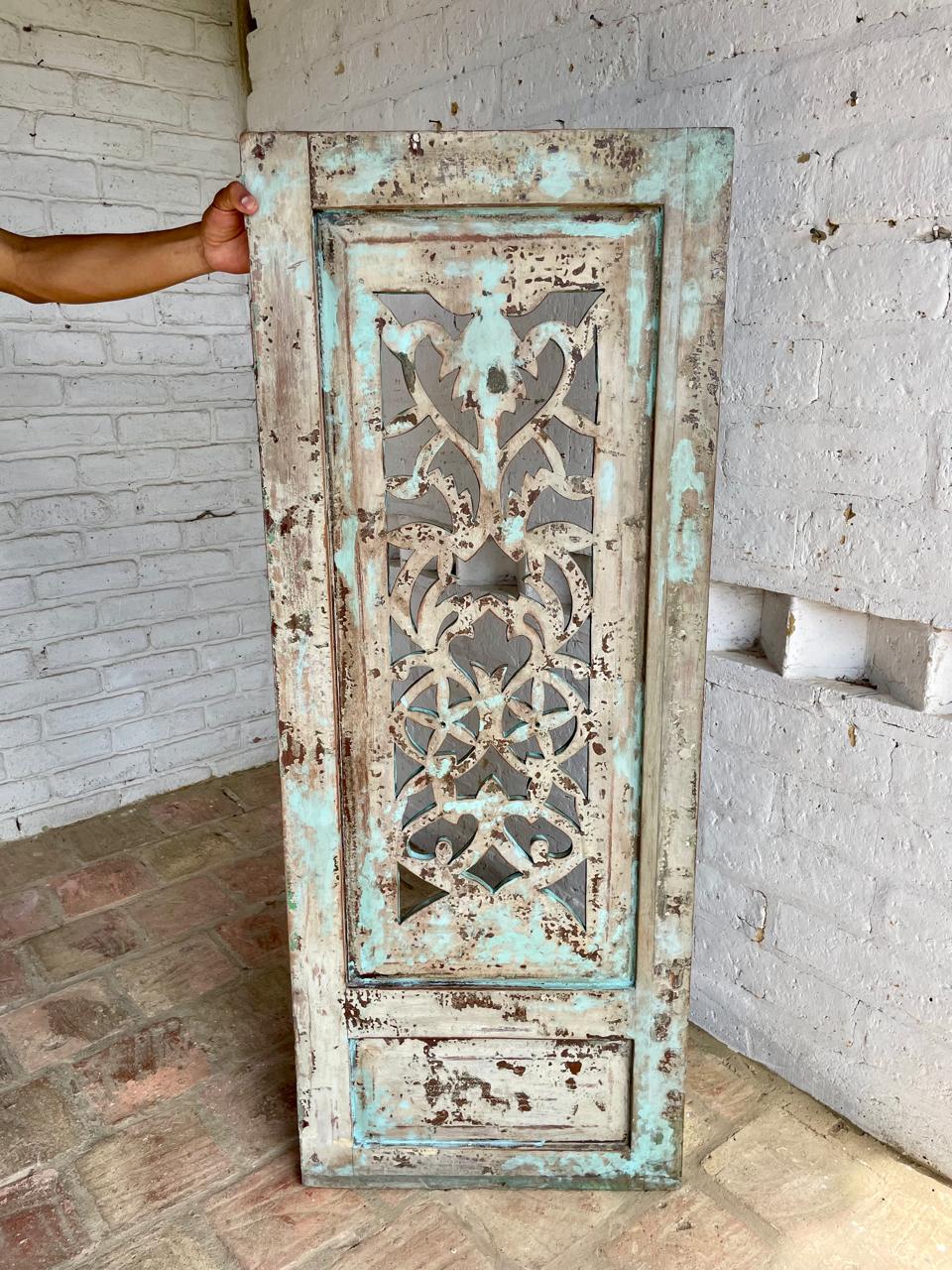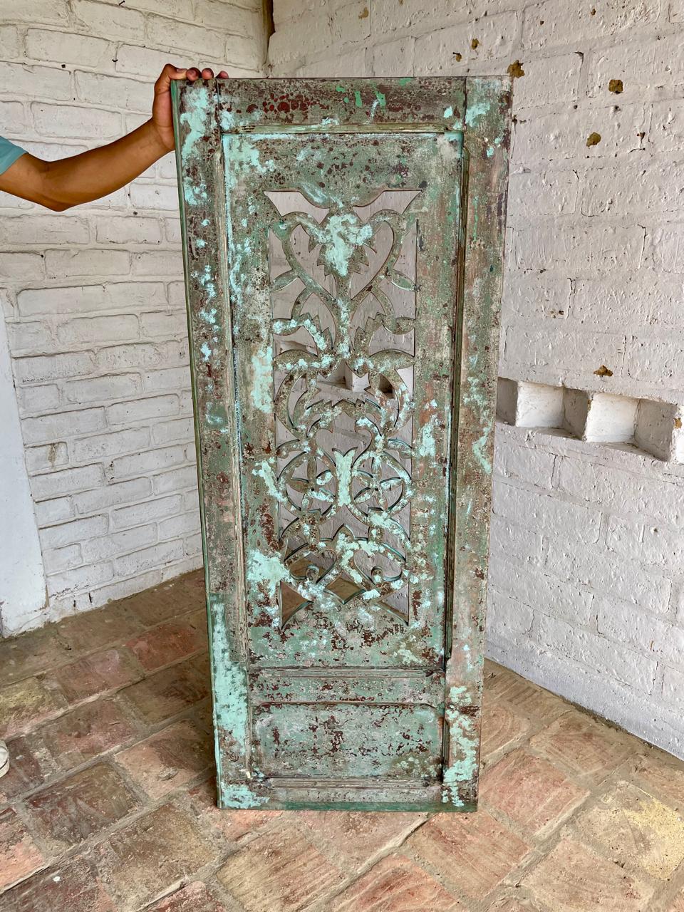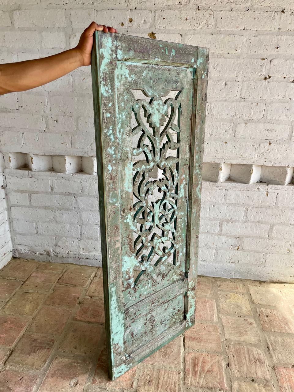 Ventana en madera maciza recuperada de una casa antigua. Conserva la pintura original. La madera se encuentra en buen estado libre de termitas y gorgojos.