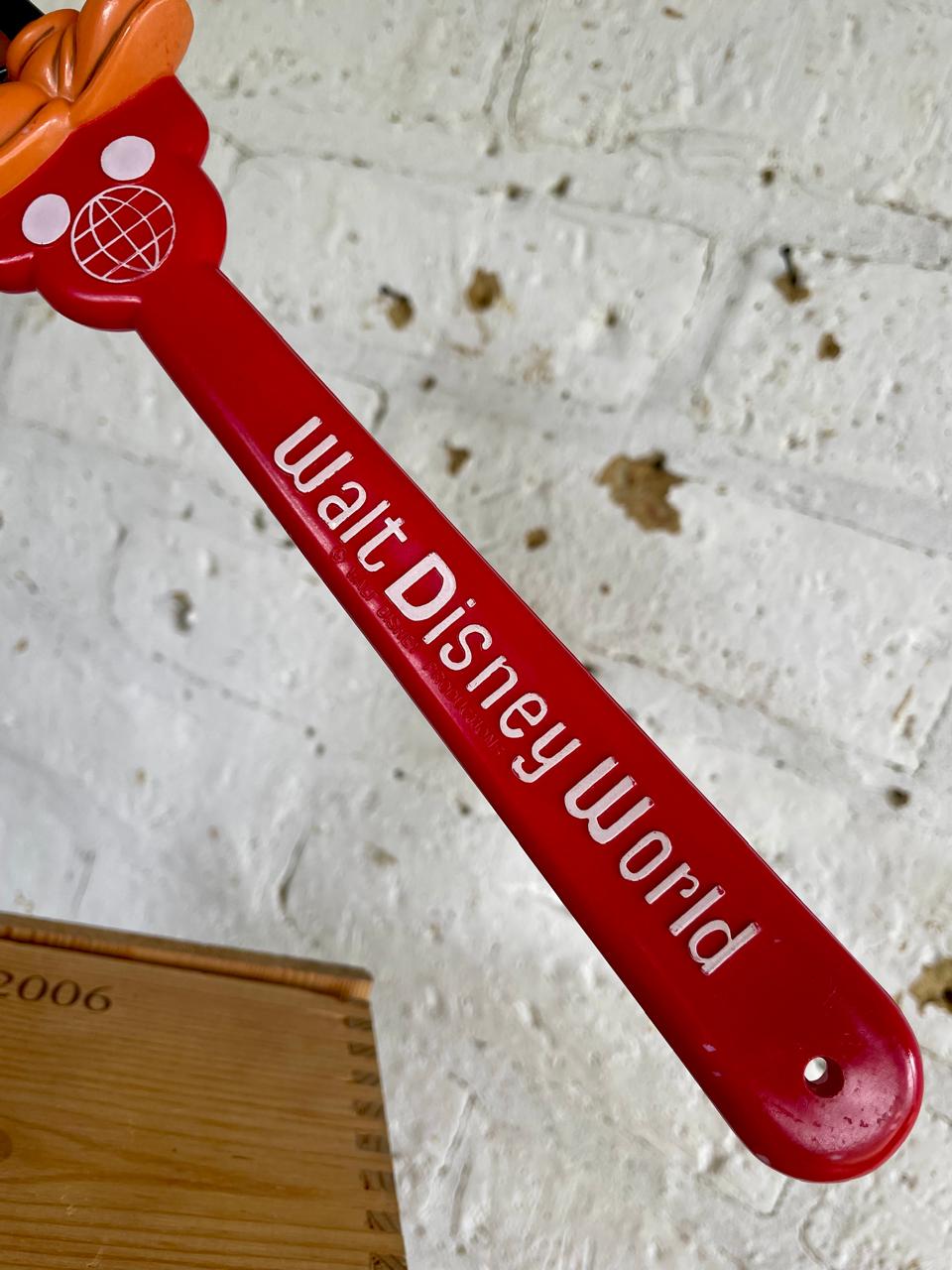 Rascador de espalda souvenir de Walt Disney World de los años ochenta elaborado en Hong Kong. La marca registrada en el mango corresponde al utilizado por Disney en los años setetenta y ocheta. Se encuentra en buen estado con pequeños desgastes en el color.