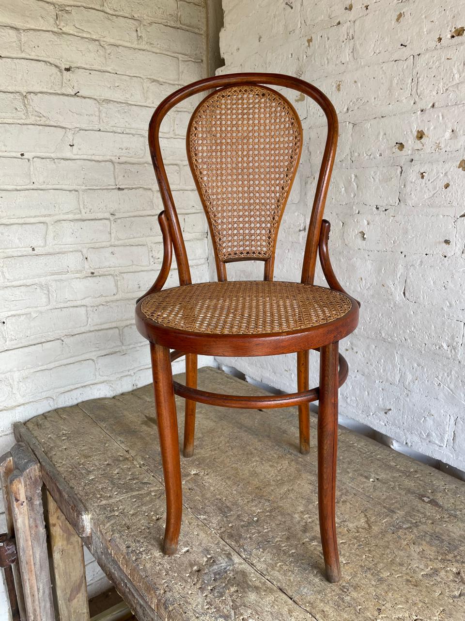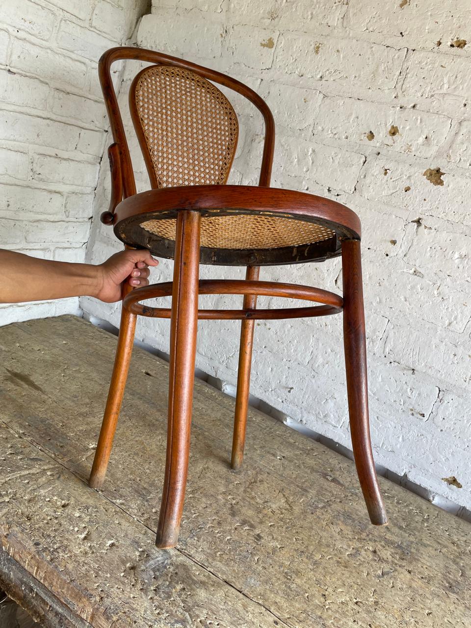 Silla en madera curvada, elaborada artesanalmente en Colombia en los años ochenta, con asiento y respaldar tejido en fibra natural, la madera y la fibra se encuentran en buen estado.