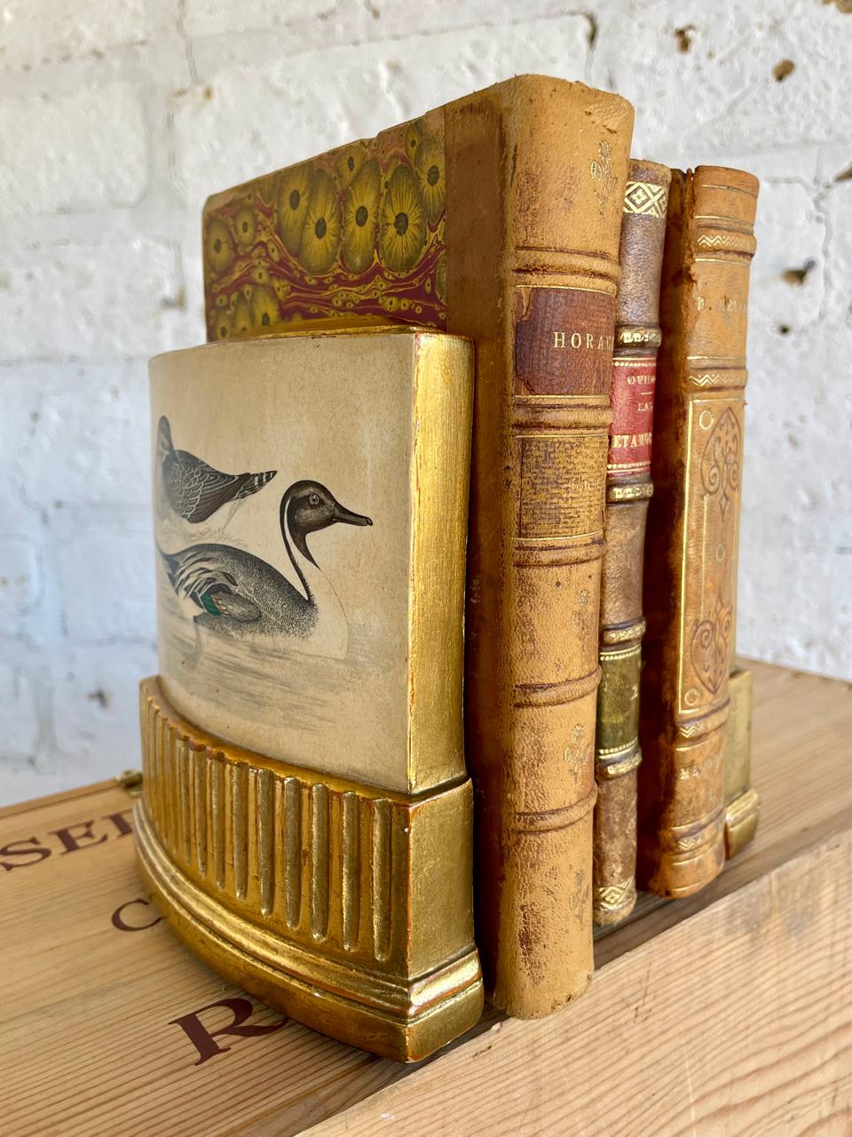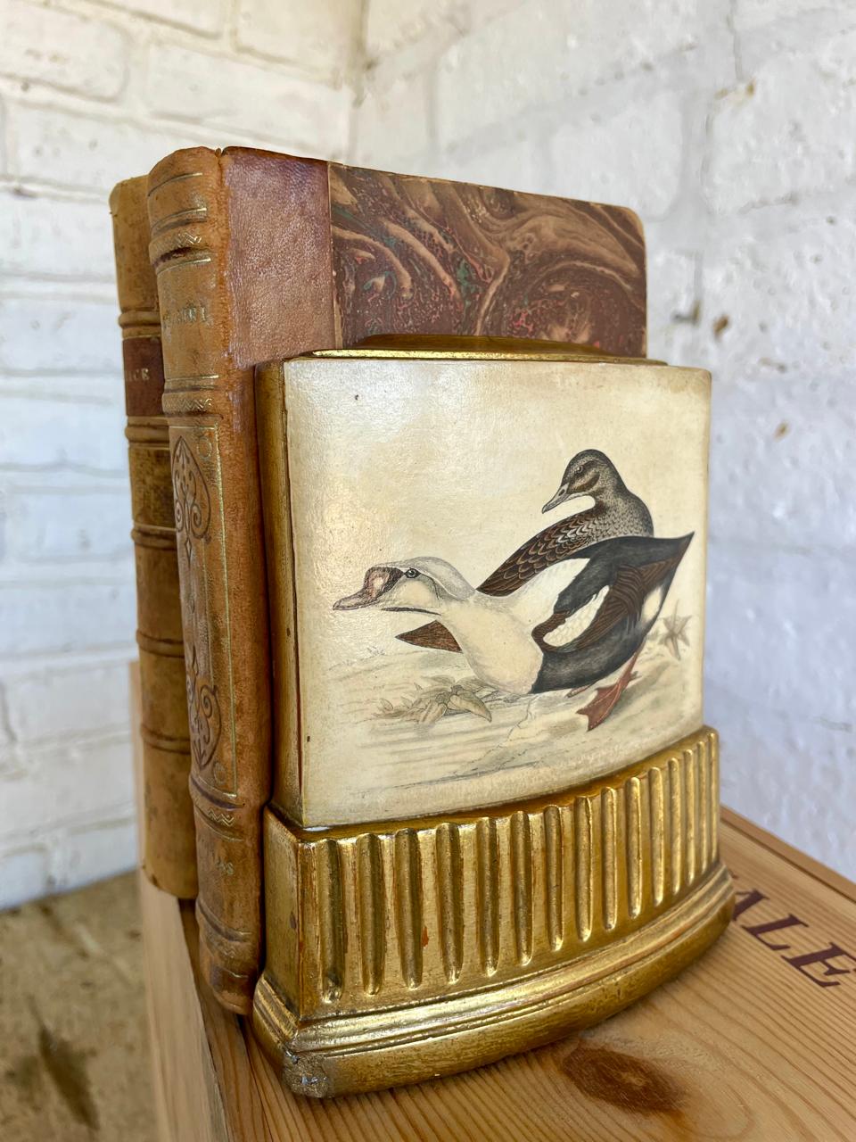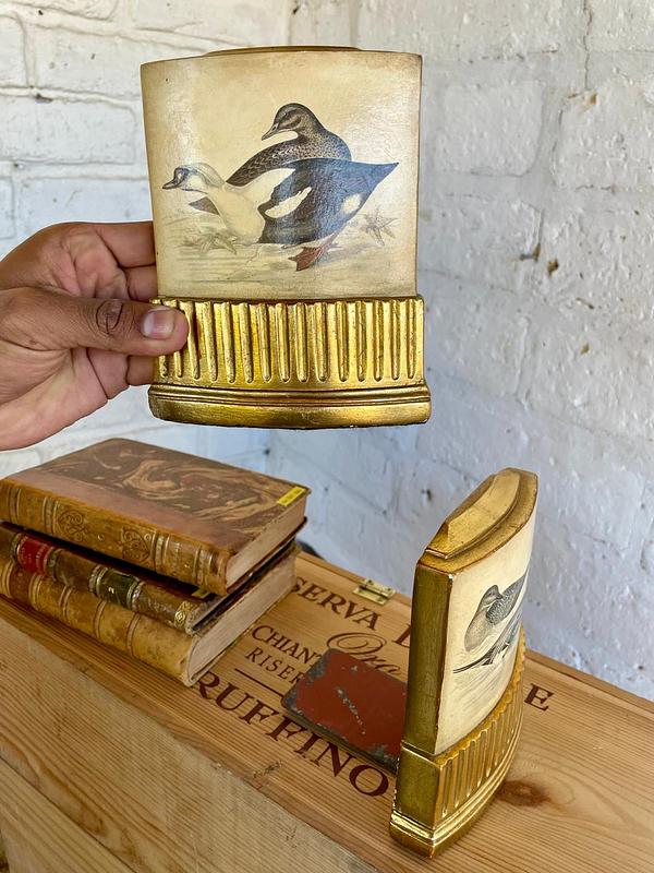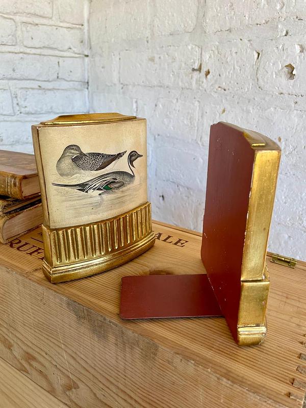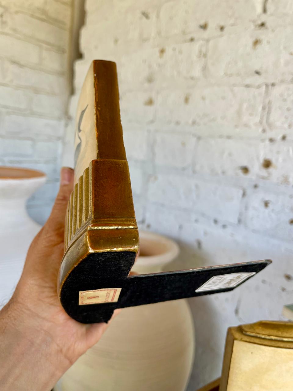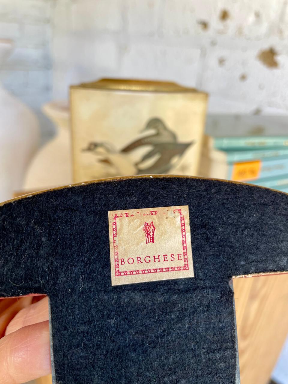 Pareja de Sujeta libros de la marca Borghese elaborados en Italia en los años ochenta, con un soporte en lámina metálica y resina de alta resistencia. Se encuentran en buen estado con algunos desgastes en la pintura logrados a través de los años y el uso.