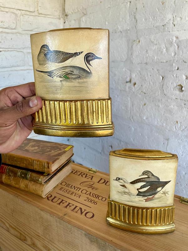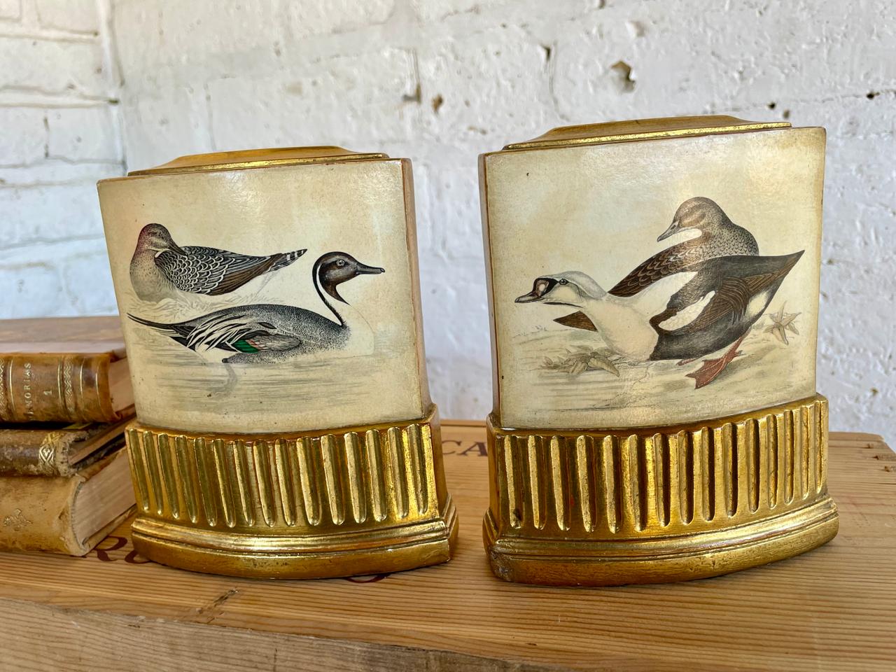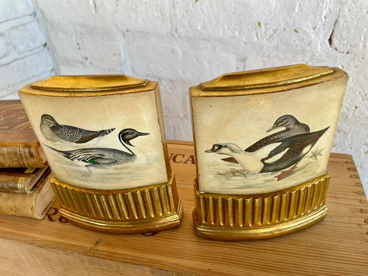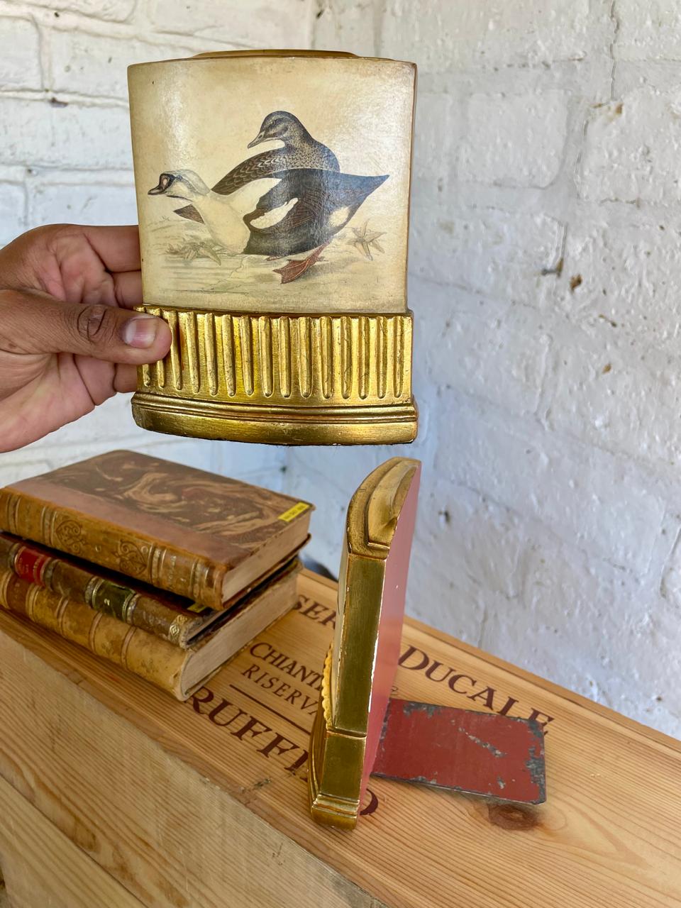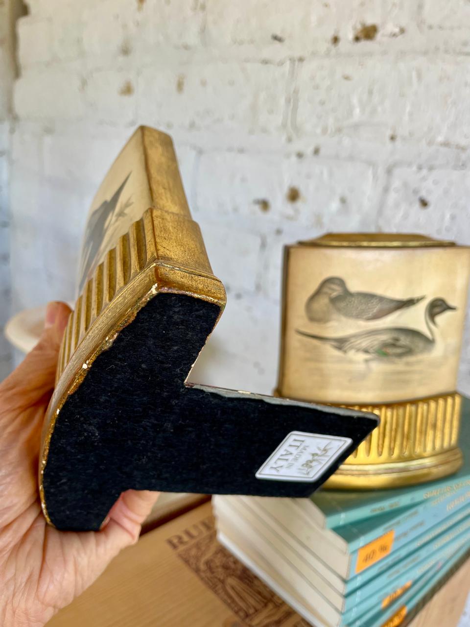 Pareja de Sujeta libros de la marca Borghese elaborados en Italia en los años ochenta, con un soporte en lámina metálica y resina de alta resistencia. Se encuentran en buen estado con algunos desgastes en la pintura logrados a través de los años y el uso.