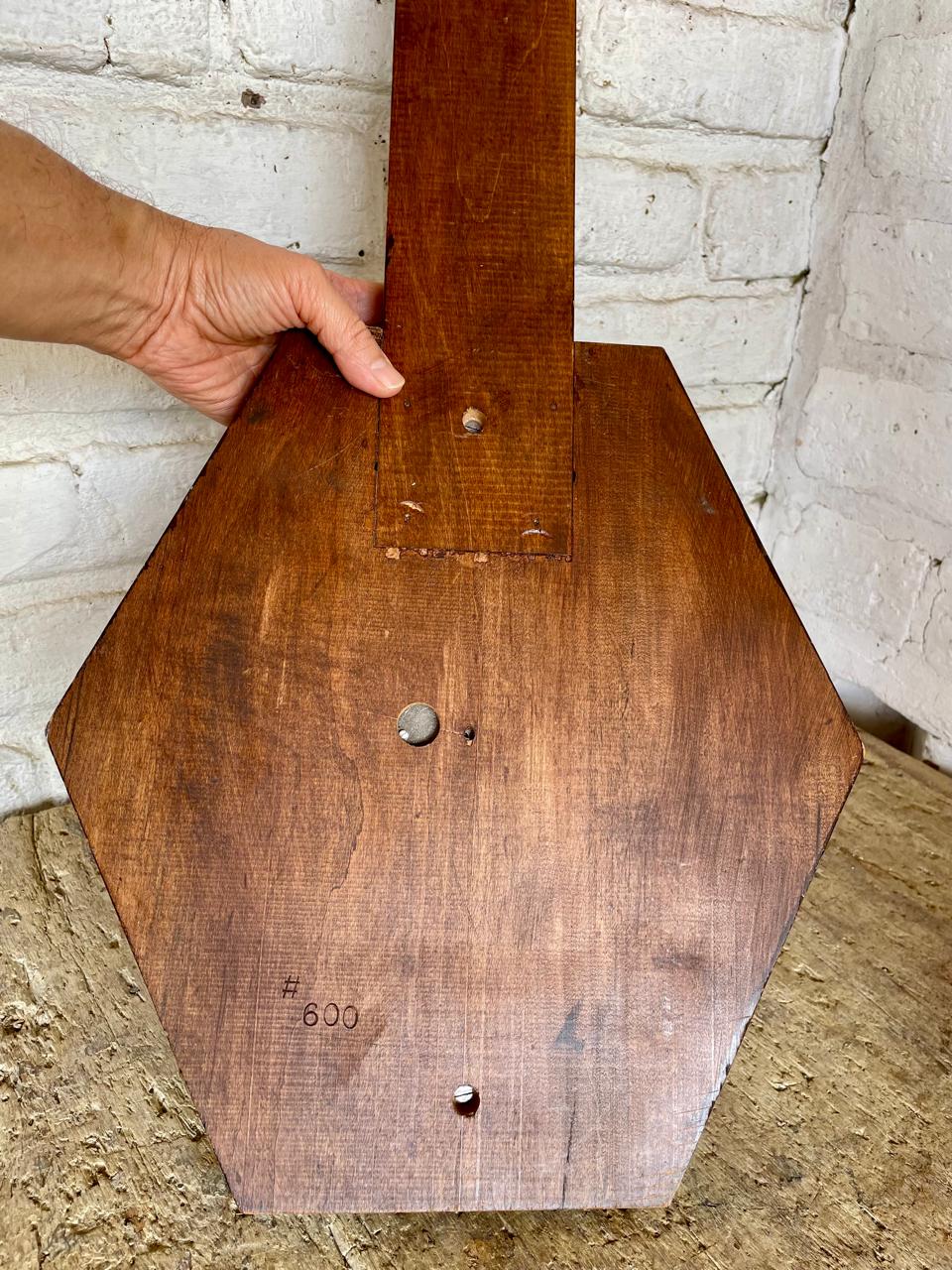 Instrumento meteorológico, para medir temperatura y presión atmosférica, de inicios del S XX, conformado por un termómetro de mercurio en la parte superior y un barómetro. Marcado como PF Bollenbach, fabricado en Barrington, Illinois, EE. UU.