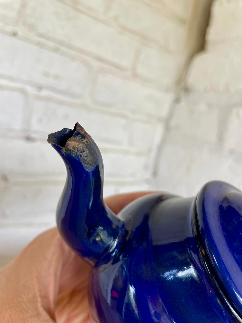 MEDIDAS: Alto con la tapa 10 cm. Ancho desde el mango hasta el pico 18 cm Diámetro de la boca 7 cm