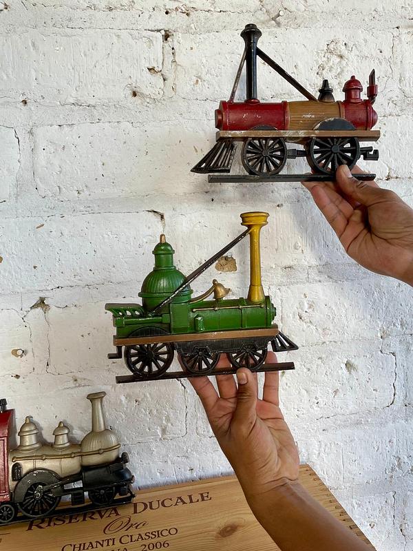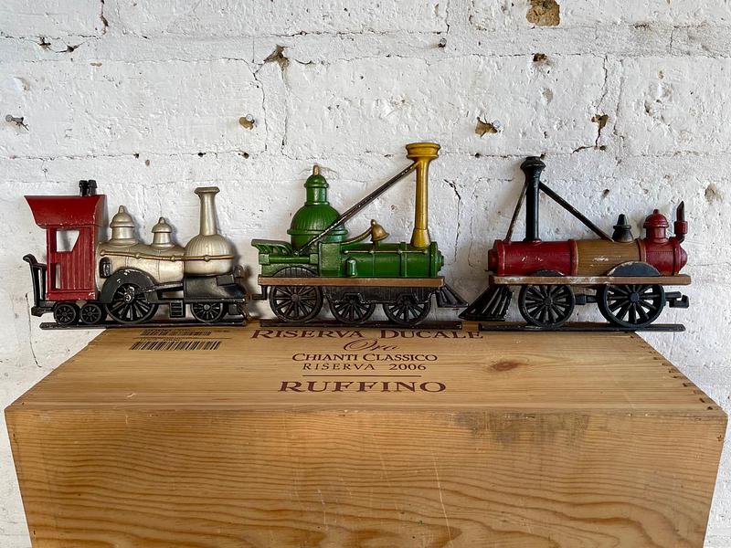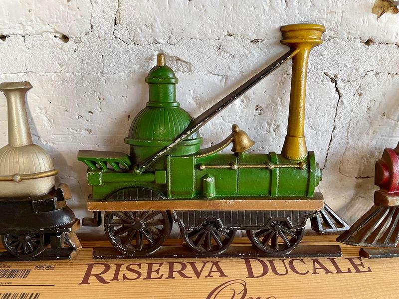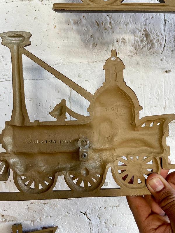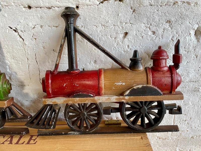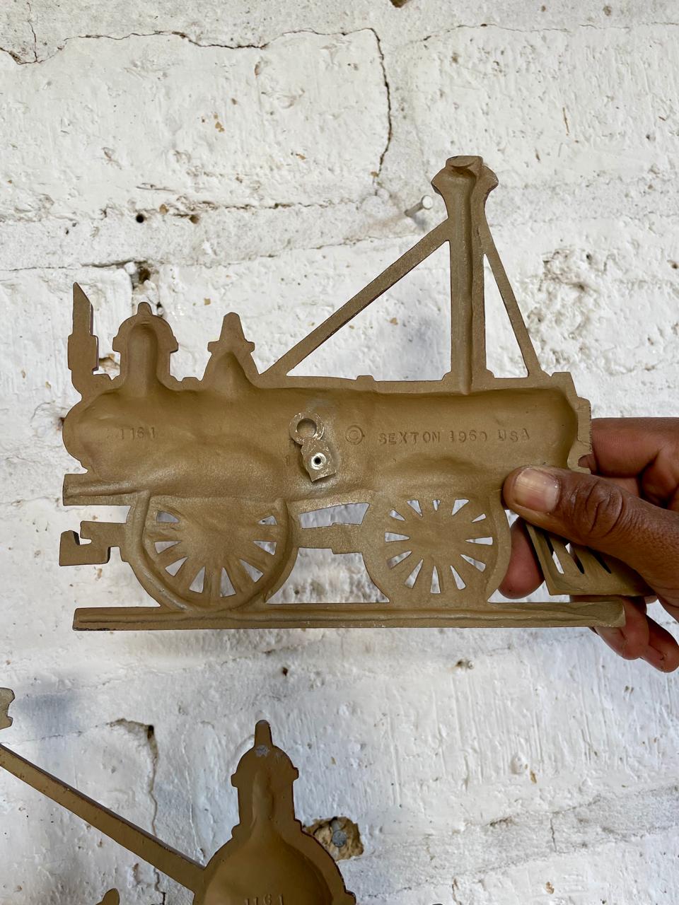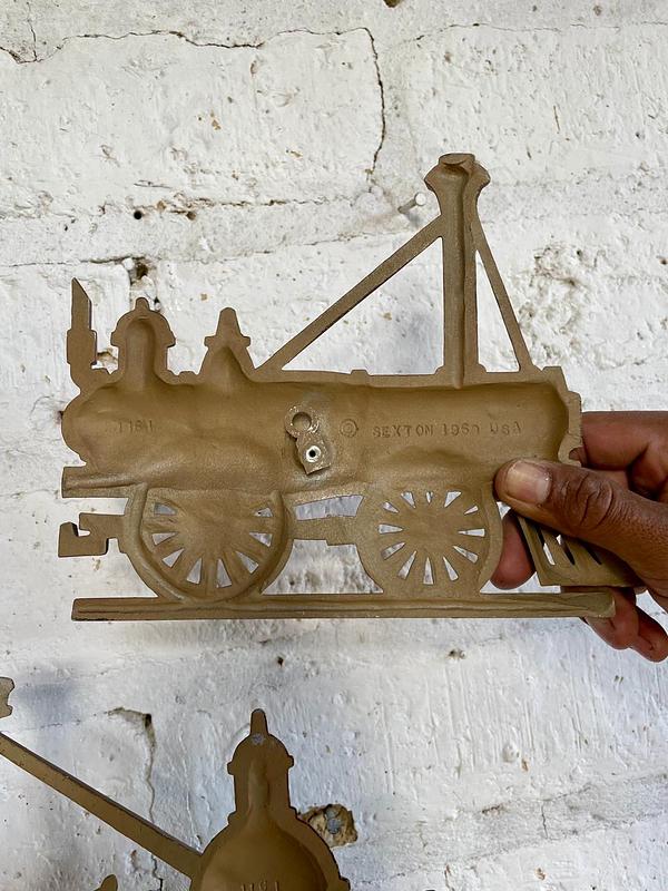 Figuras de aluminio fundido decoradas con pintura horneada producidas en los Estados Unidos por la marca Sexton en 1969. En el respaldo tienen la marca del fabricante y el año.
