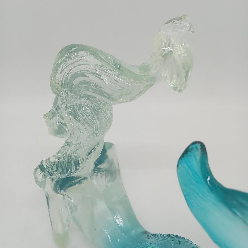 Delicada figura de sirena en resina con apariencia de vidrio.