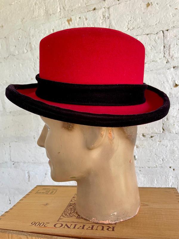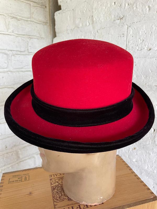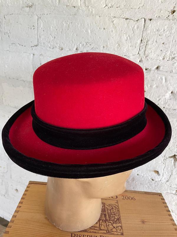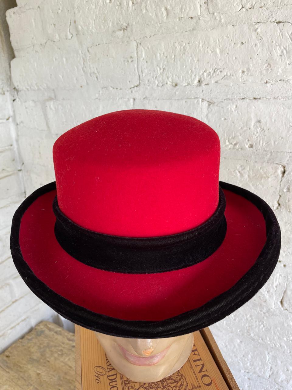 Sombrero de fieltro 100% lana, Lite Felt con cinta de terciopelo negro elaborado en U.S.A. en los años noventa. Se encuentra en buen estado.