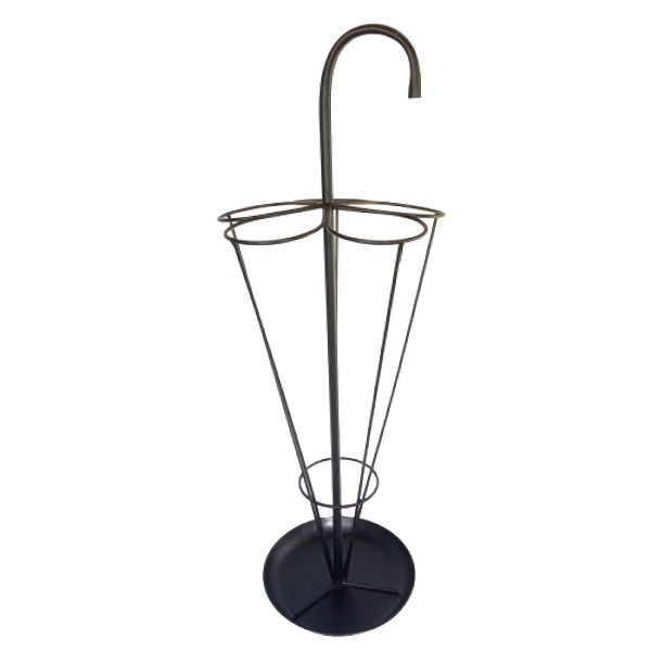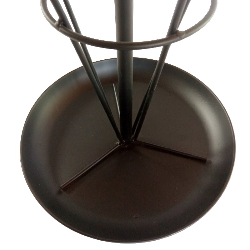En varilla y plato metálico en la base, diseño minimalista. Capacidad de 8 a 10 sombrillas.