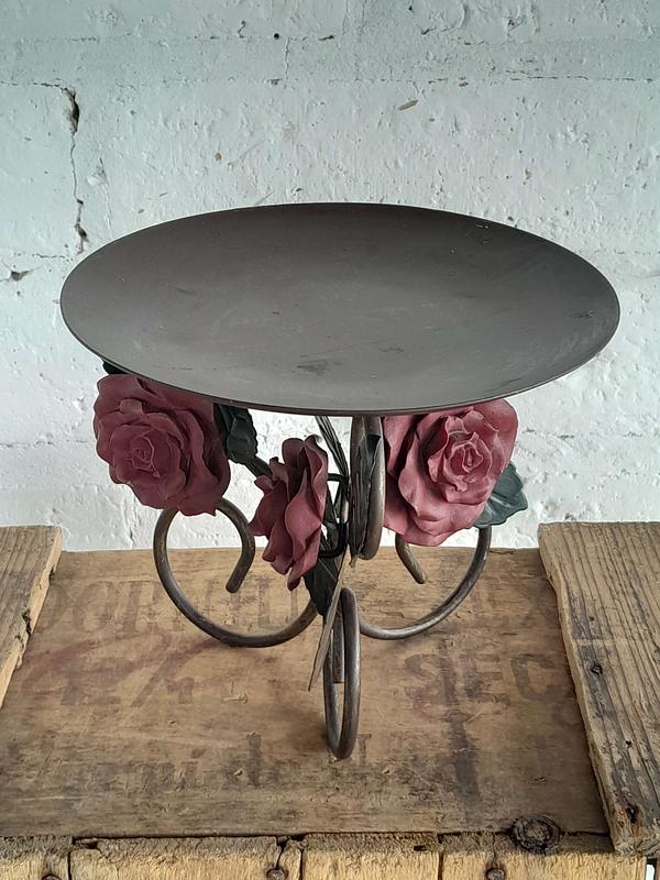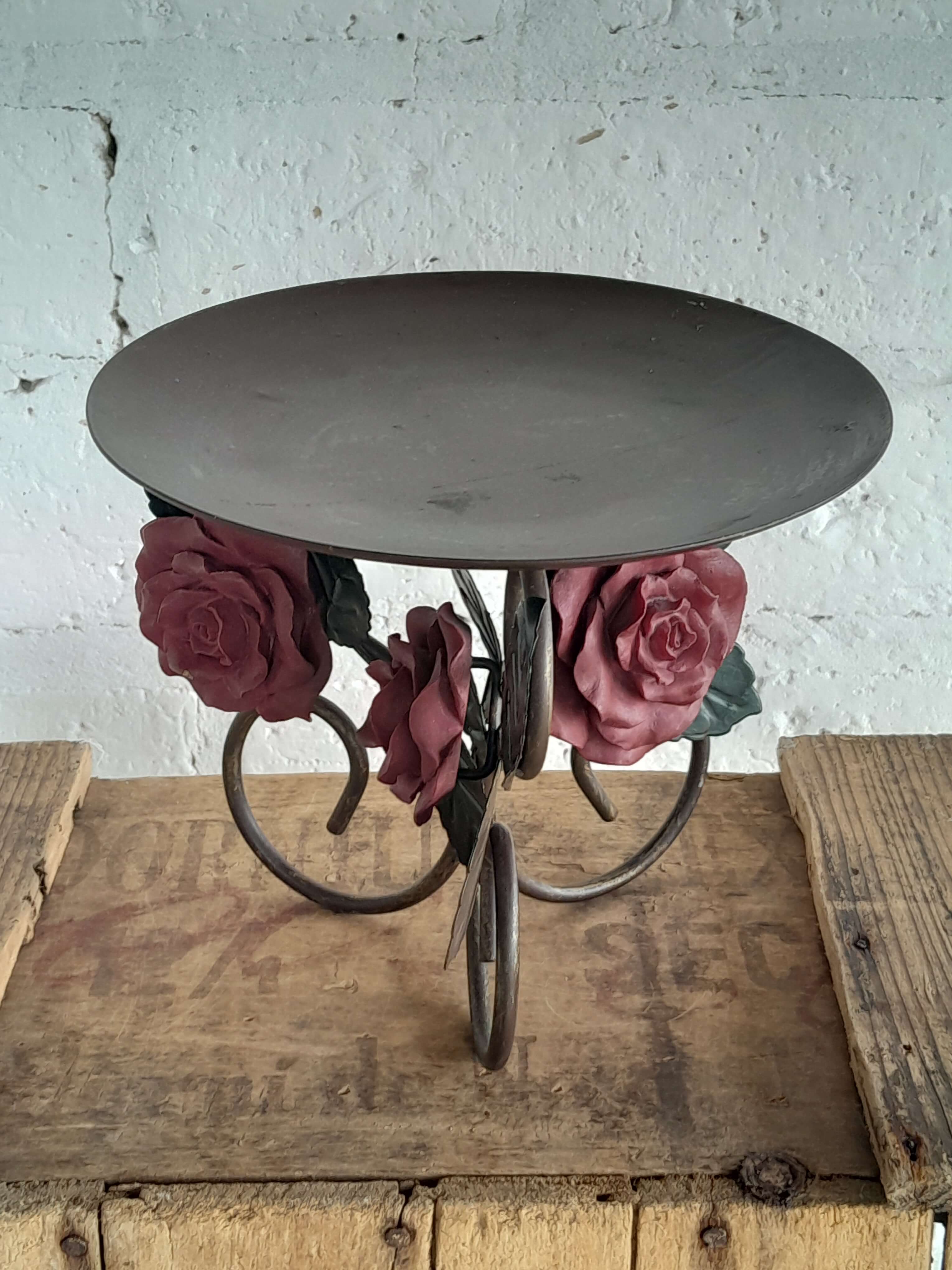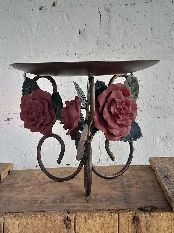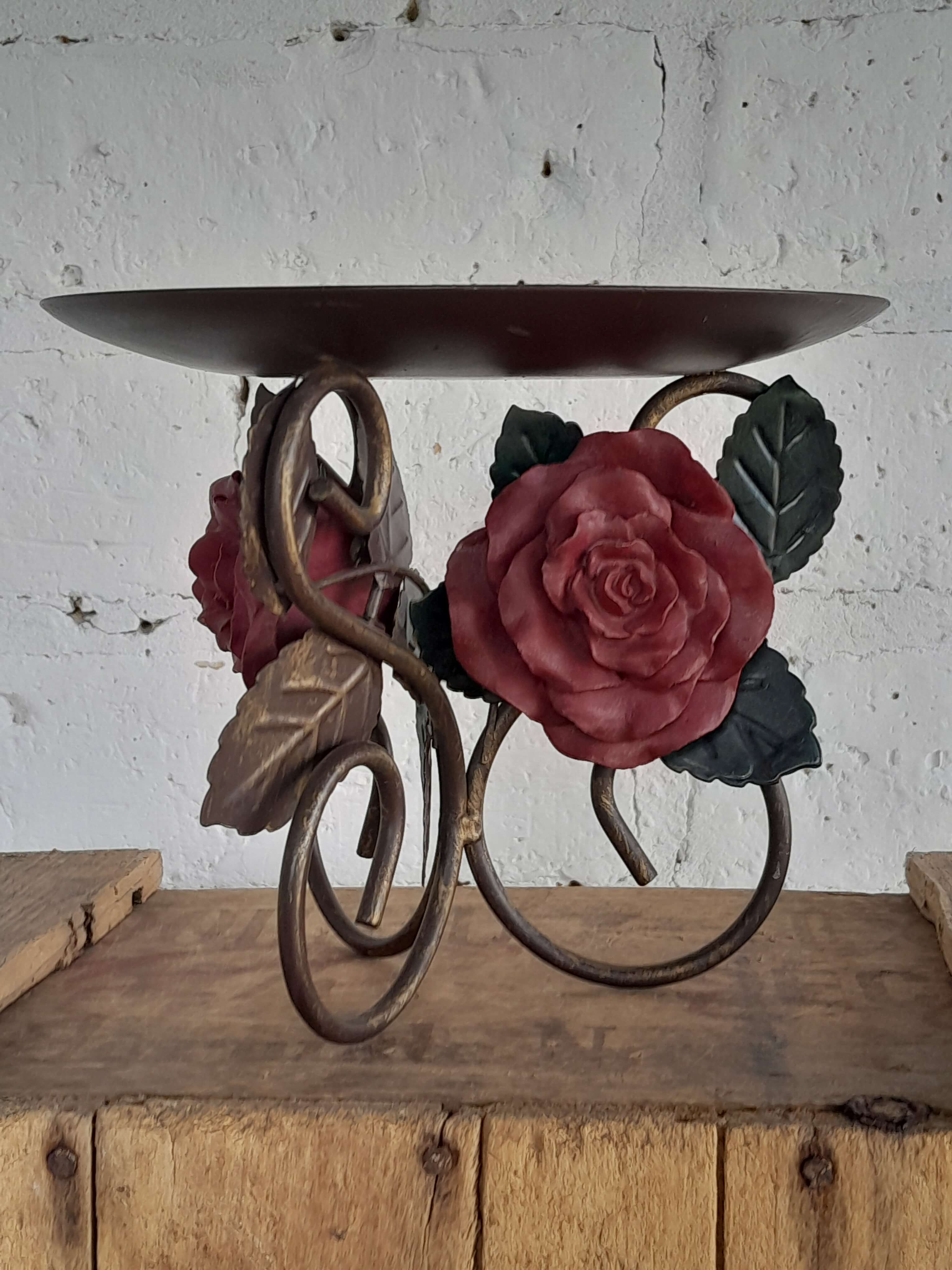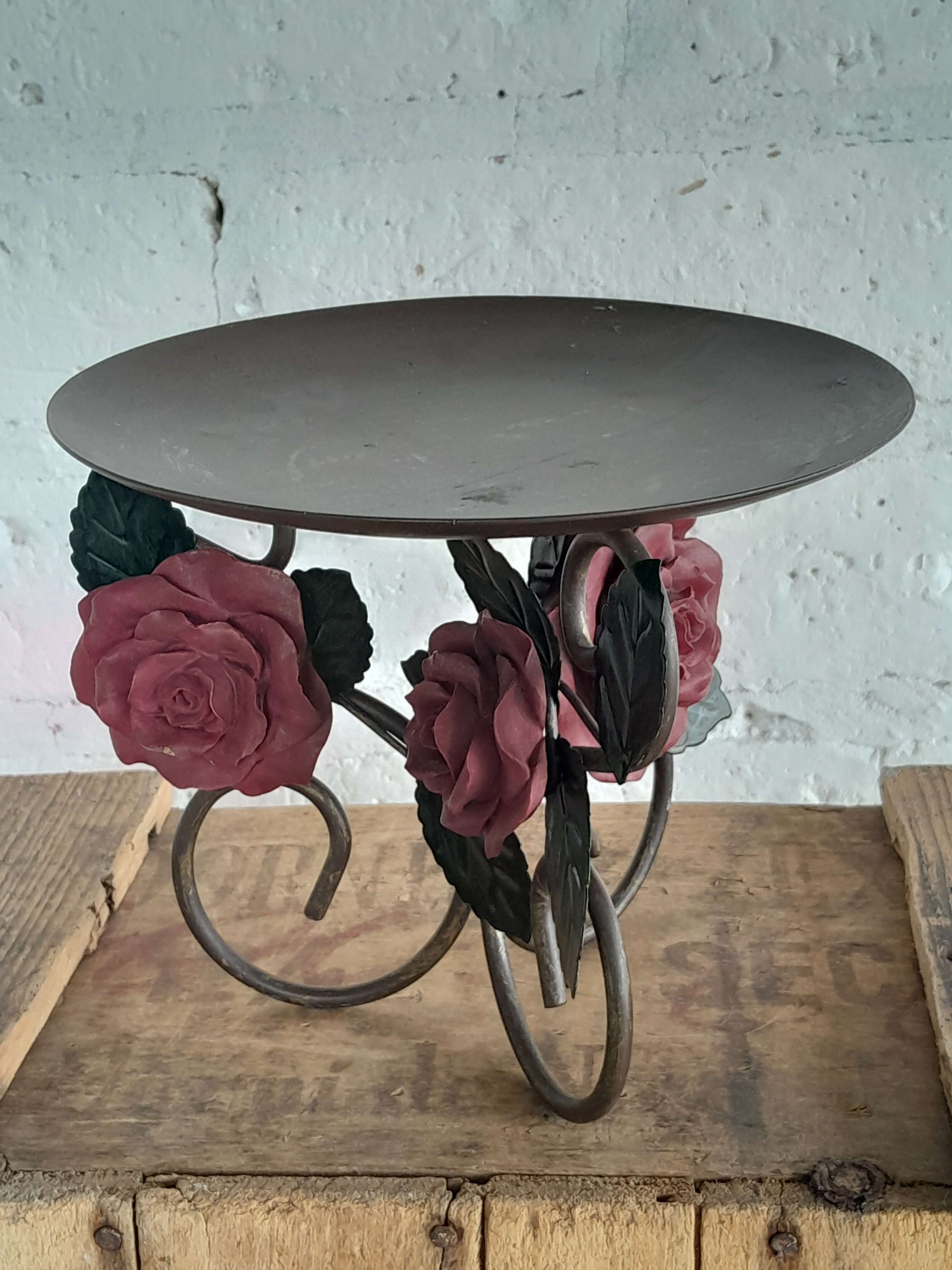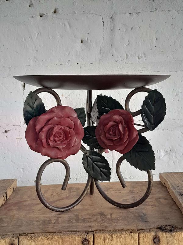 Base metálica decorada con rosas de resina fabricado recientemente con apariencia vintage.