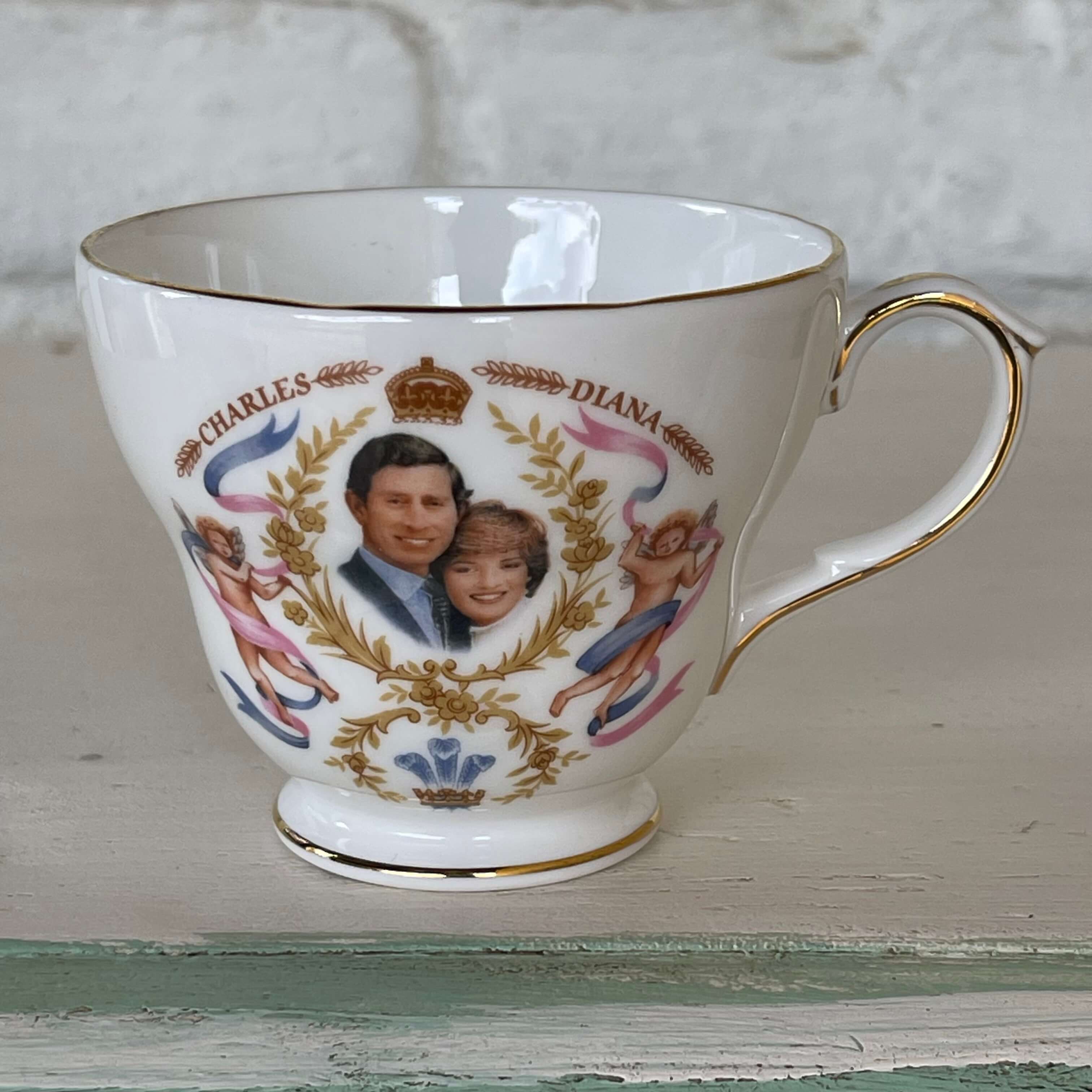 Plato y taza ingleses conmemorativos del nacimiento del principe Guillermo en Londres 1982, al respaldo tiene el sello del fabricante: Duchess empresa que se dedica a la producción de porcelana fina desde 1888 teniendo entre sus clientes a la realeza europea. Se encuentran en buen estado.