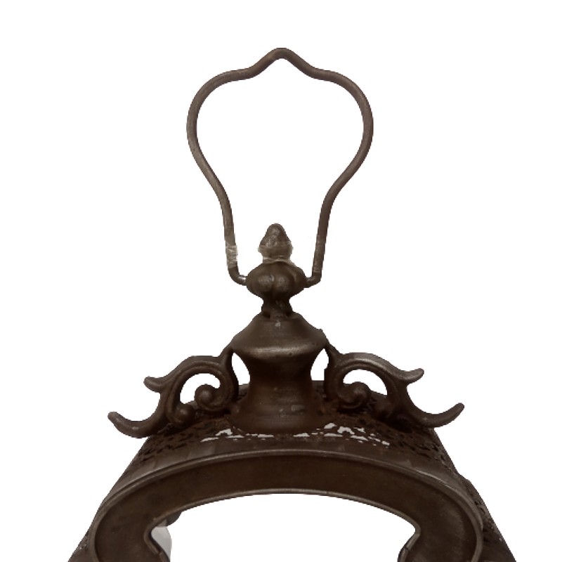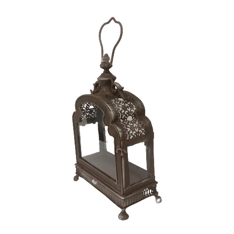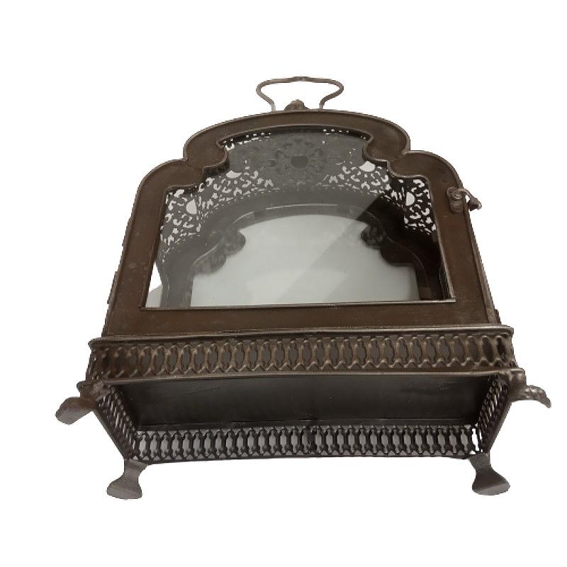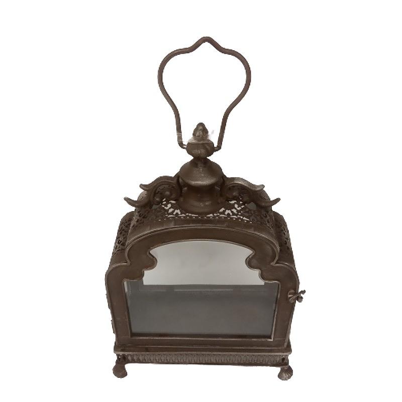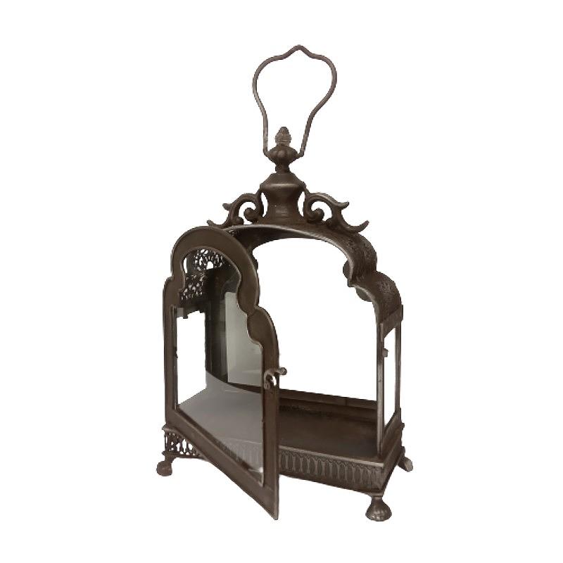 Farol metálico estilo victoriano, gótico romántico en latón grueso, hierro fundido y vidrio, ideal como brisero, también puede utilizarse como terrario.