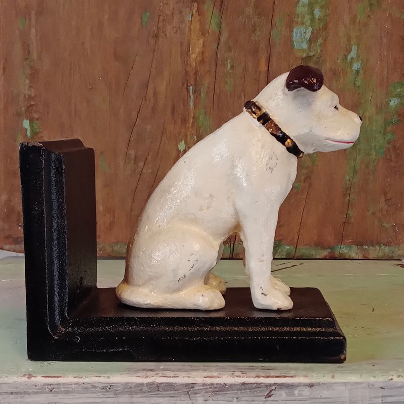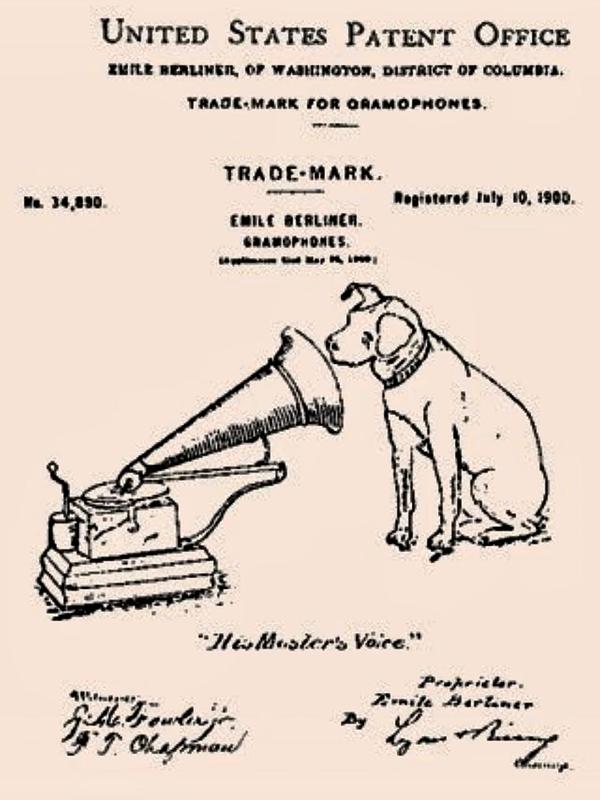 Figura del icónico perro Nipper pintado en Inglaterra por Francis Barraud en 1899 y titulado "His Master´s Voice"; en idioma español "La Voz de su Amo". Esta imagen se convirtió en logosímbolo de la compañía discográfica Estadounidense RCA Victor en 1901, marca famosa por la producción de fonógrafos a inicios del S XX. Para resumir " El Perro de la Victor".