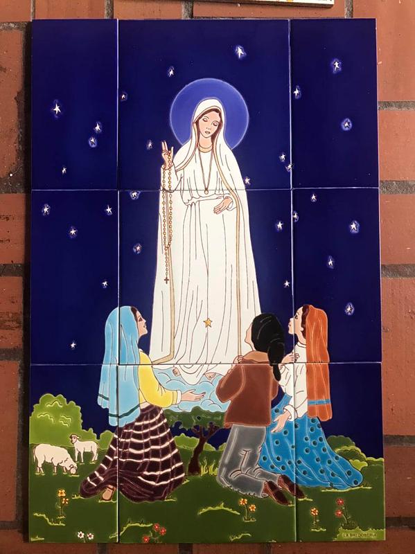 Pintada a mano sobre baldosa y quemadas a alta temperatura. Apta para exteriores. Elaborada con barnices de calidad para garantizar su exposición a la intemperie, sol, lluvia, etc., sin desteñirse. Colores garantizados de por vida. Ideal para empotrar en la pared, decorar fachadas y portales. Pintada sobre 9 baldosas