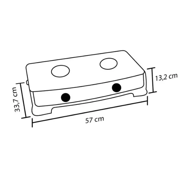 Cocineta a gas de 2 puestos. Superficie libre de juntas que evita la acumulación de grasas, y acabado en esmalte porcelanizado; antiadherente.