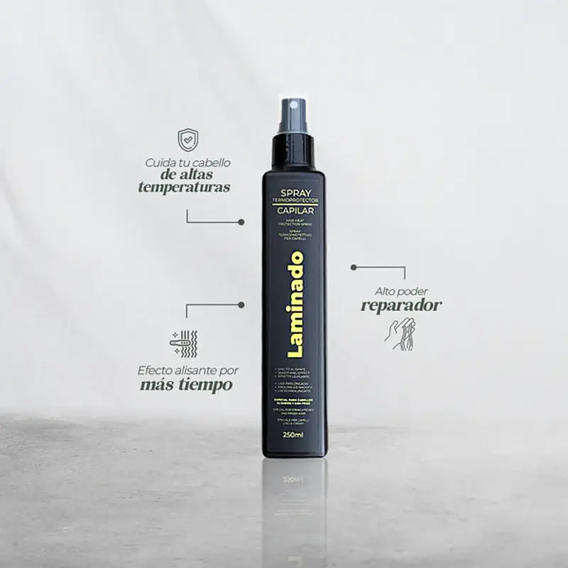 - Protección térmica: Protege la fibra capilar durante el uso de secadores o planchas, reduce el daño causado por el calor al formar una película protectora duradera.