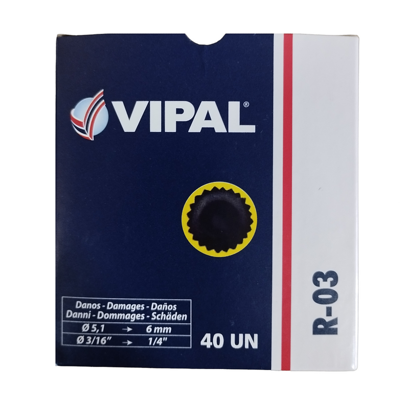 Parche de la marca Vipal de gran durabilidad. Implementan un sistema frio de vulcanizado para el sellado.