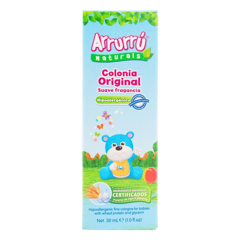 La colonia original Arrurrú, gracias a su contenido de glicerina y proteína de trigo brinda hidratación y suavidad a la tierna piel de tu bebé. Su fór